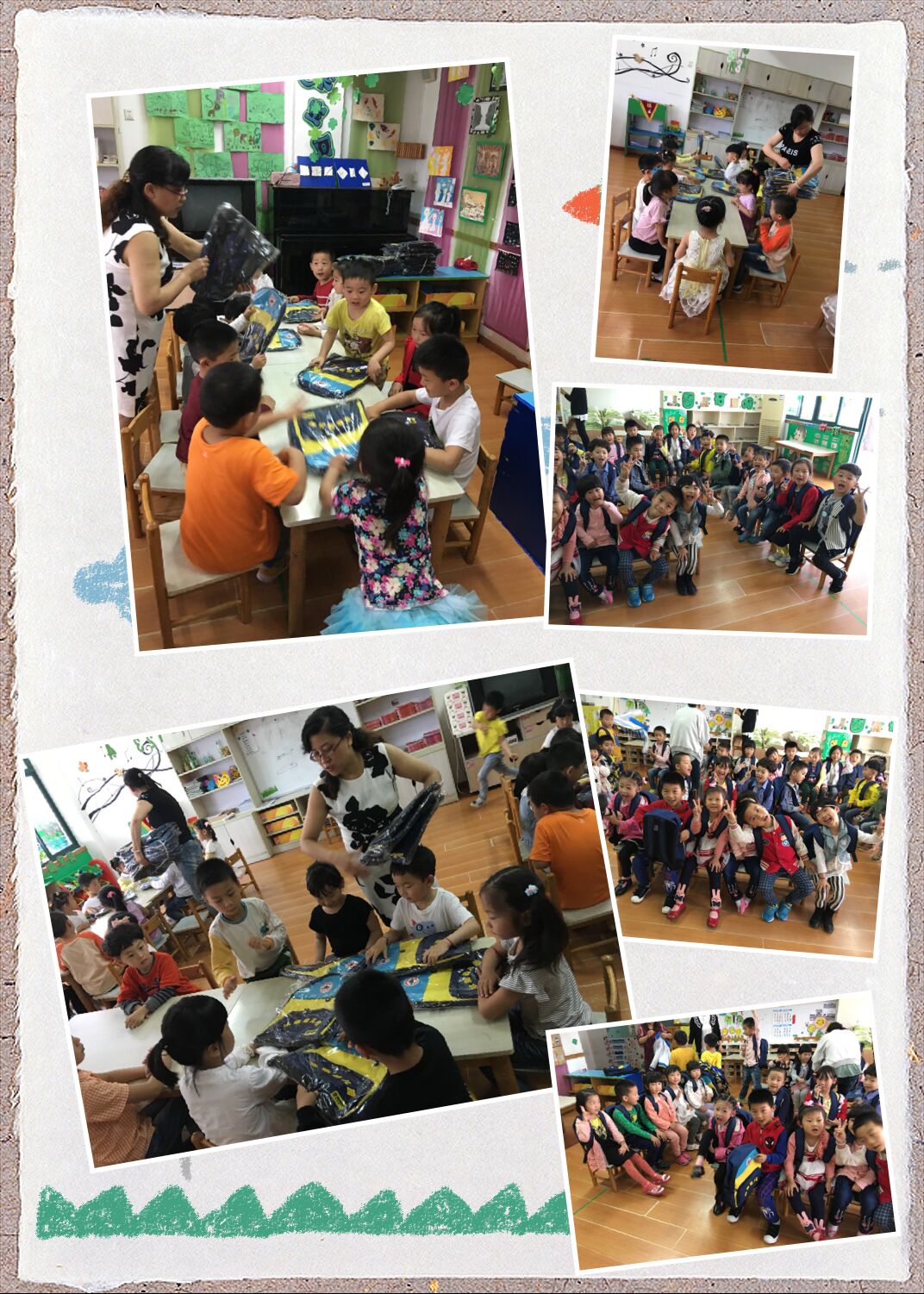 六一是我们小朋友的节日,更是快乐的节日。我们幼儿园给孩子们准备了六一节的礼物——小书包。小朋友都非常喜欢,第二天都背上小书包快快乐乐的来上幼儿园了。看看他们背书包的样子可真神气呢!