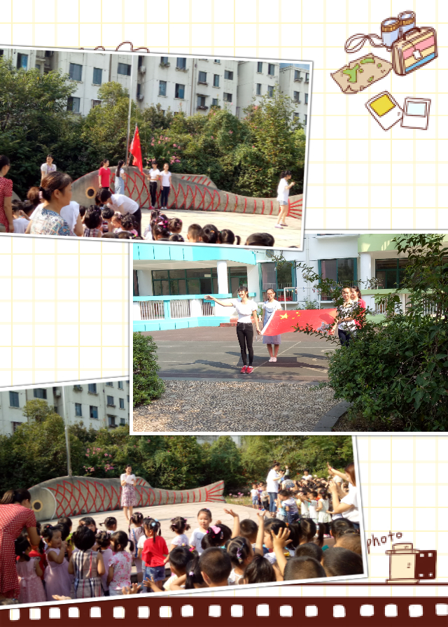 今天是开学的第一天,大一班的宝宝们早早的入园,迫不及待的想参加升旗仪式,因为他们知道大班的宝宝们会成为升旗手和护旗手,在升旗仪式中,大一班的宝宝认真的园长妈妈的讲话,看着我们老师是怎么升国旗的,回到班级有的宝宝就在模仿升旗。