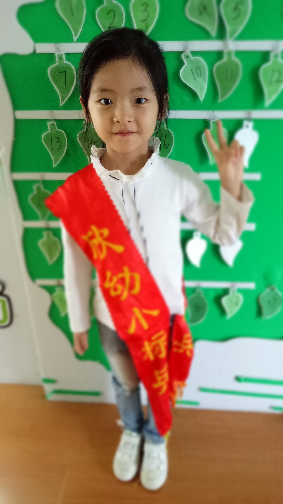 本周的礼仪小标兵是曹佳妤小朋友,现在的她和中班比有了很大的进步哦!希望你继续加油哦!