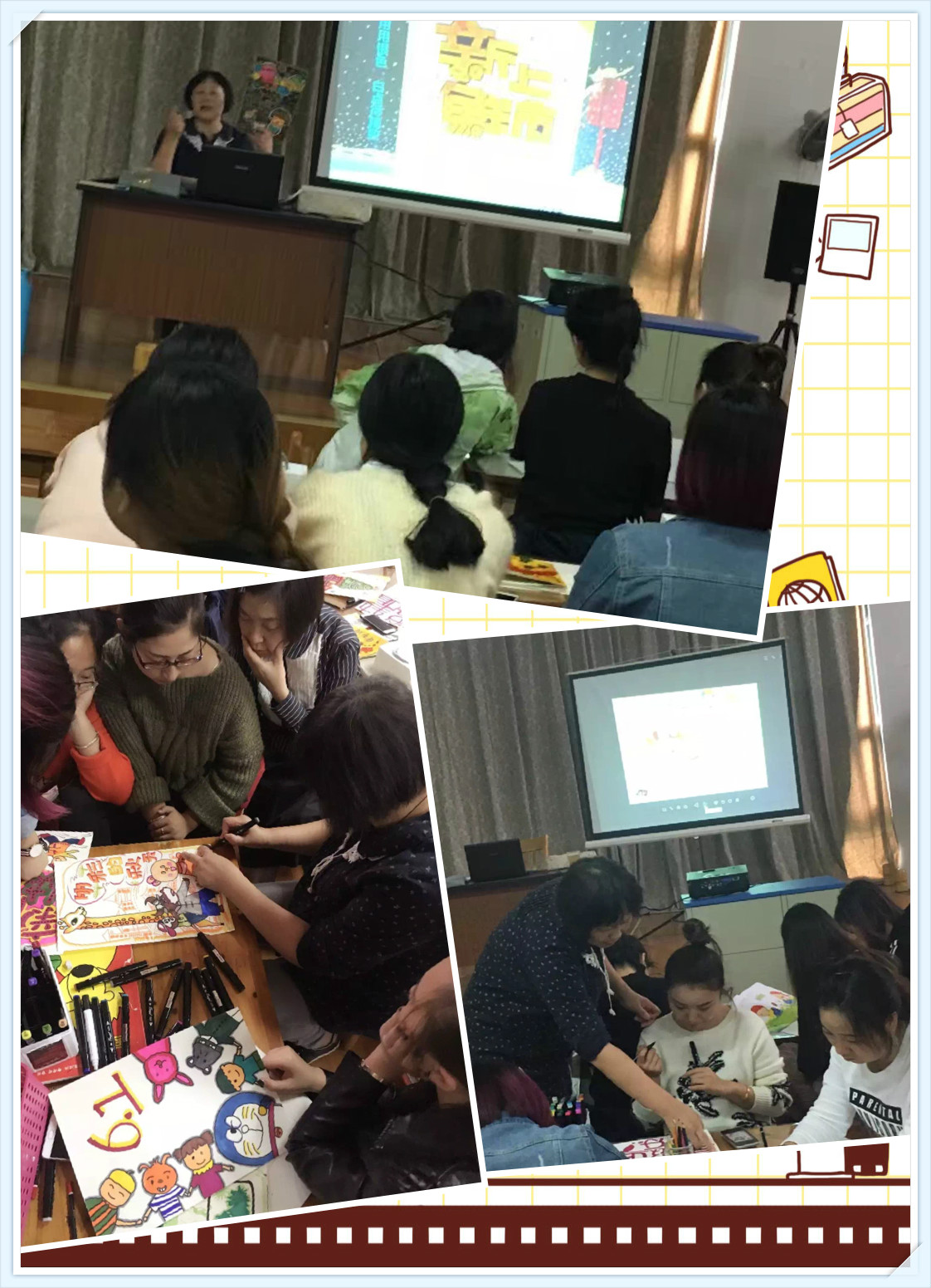 我园美术专题第二次培训——海报插图设计,老师们通过欣赏图片、自己收集适合幼儿绘画的动物、人物图片,现场进行了海报插图的设计!看,为了让海报画面更显得生动些,阎老师现场帮我们添加了画面内容!