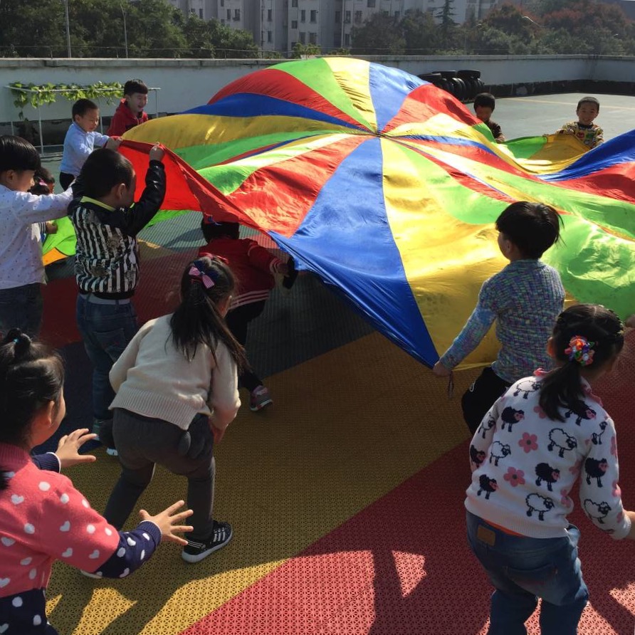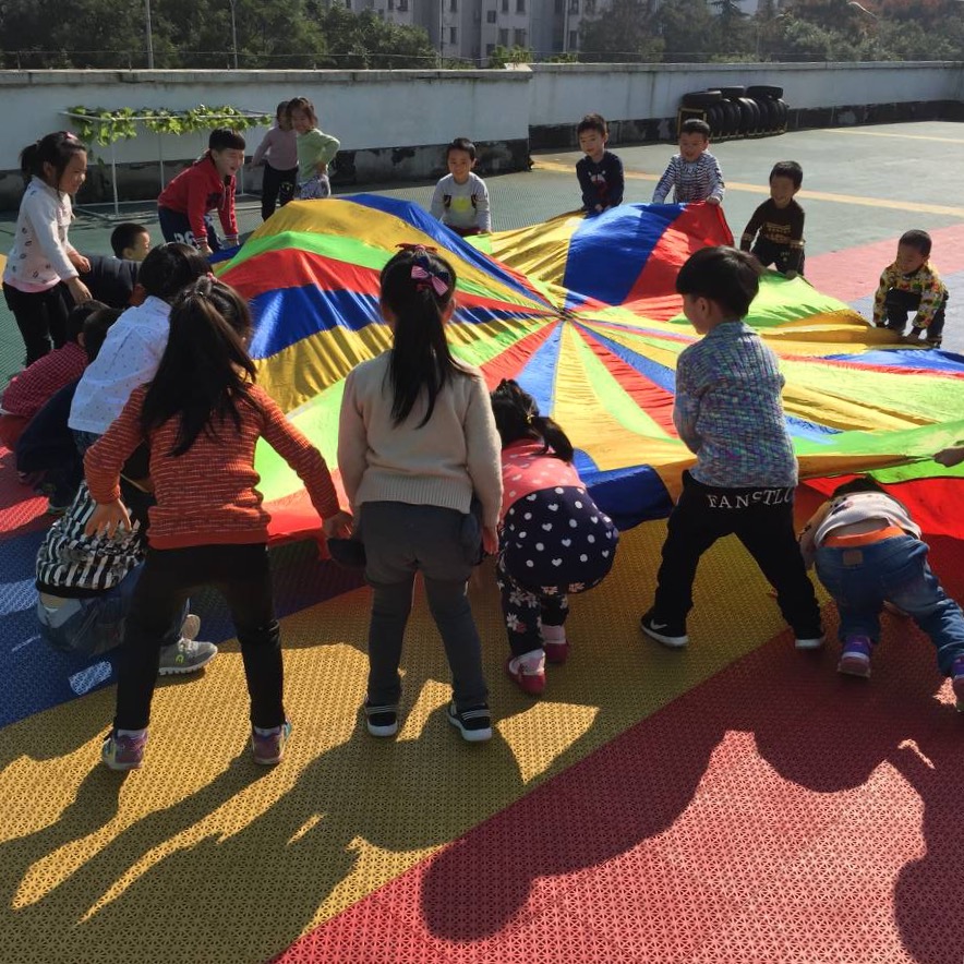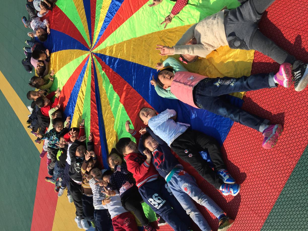 周四上午,我们在三楼平台上一起玩了彩虹伞,宝贝们举着彩虹伞转着圈,钻进去做游戏,玩得可开心了~阳光正好,可爱的你们~