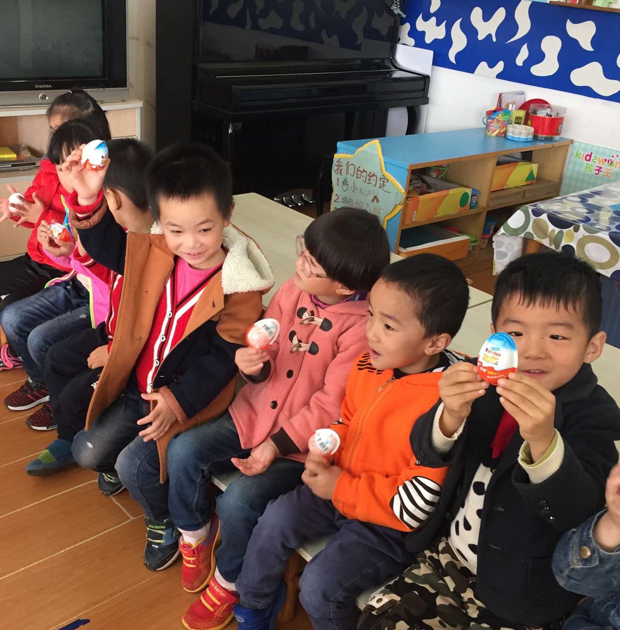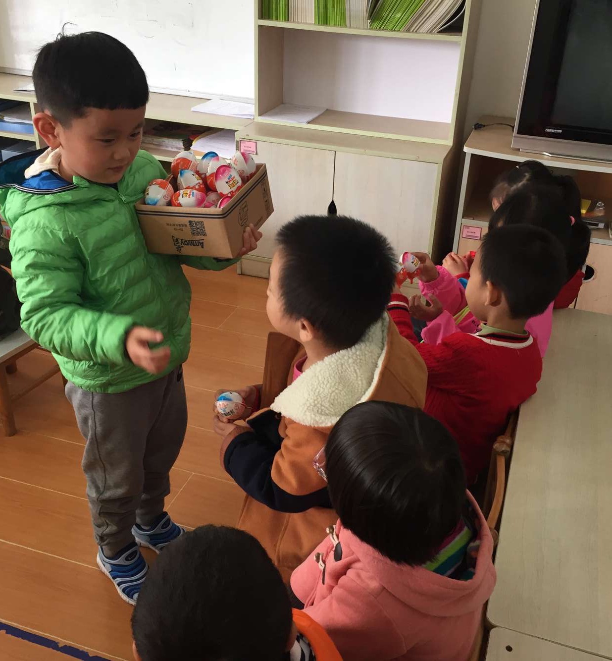 今天是刘晟睿小朋友的生日,他带来了巧克力分享给小朋友,小朋友们都为他送上了祝福,祝刘晟睿小朋友生日快乐,健康成长!