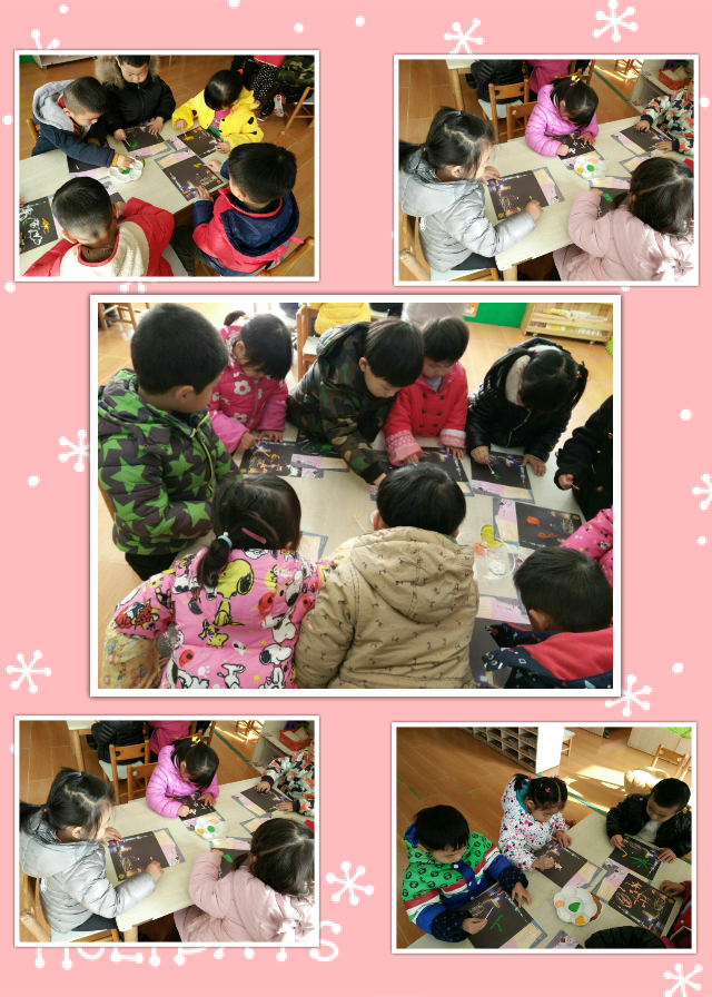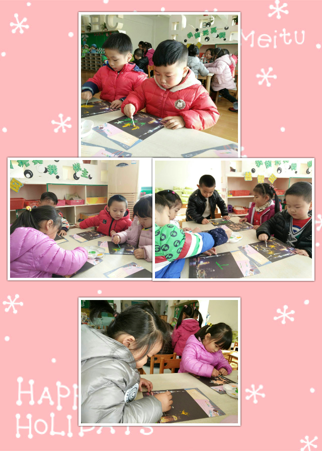 新的一年即将来临喽,快乐的节日也要来喽,小朋友们今天也开始开心的放烟花啦,哦!原来是在纸上放起了烟花,看,小朋友们在认真的绘画,有的烟花都跑到了天空上,开出了五颜六色的花,真好看!