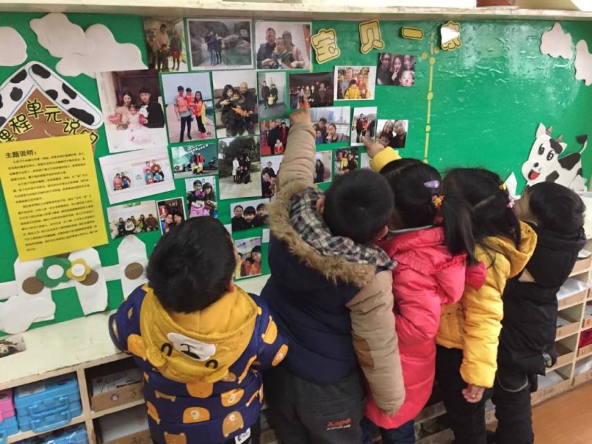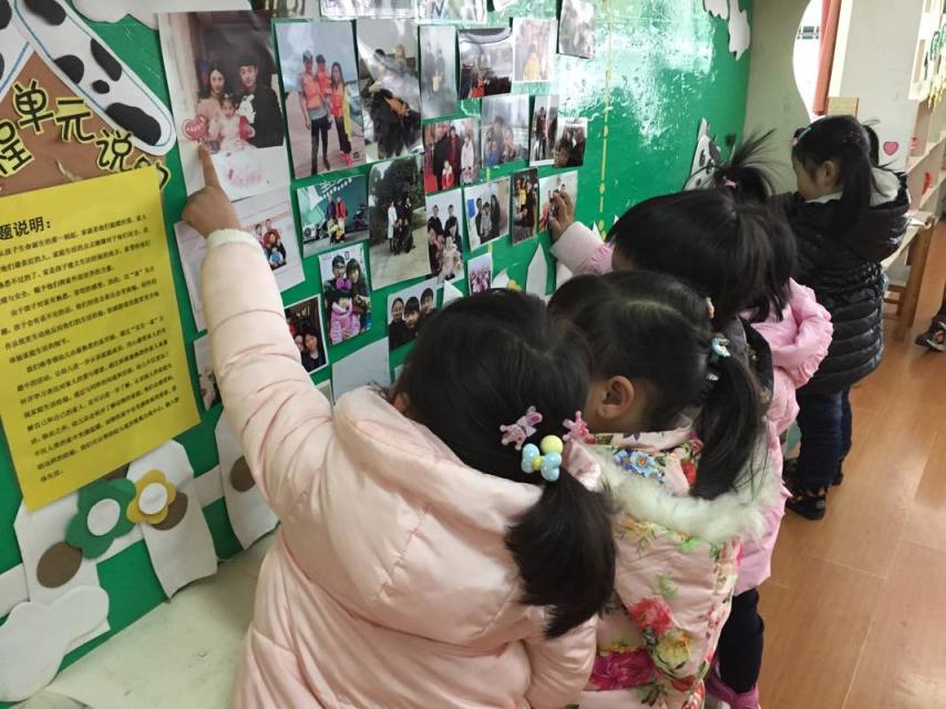 瞧,大家在看什么呢?哦,原来是欣赏全家福呢,数一数我家有几口,爸爸,妈妈,还有我,,,,有三口。小朋友很开心的给同伴说说自己的一家人,看来小朋友们都喜欢介绍自己的家人,有的还能说出他们的名字呢,我们很棒吧!