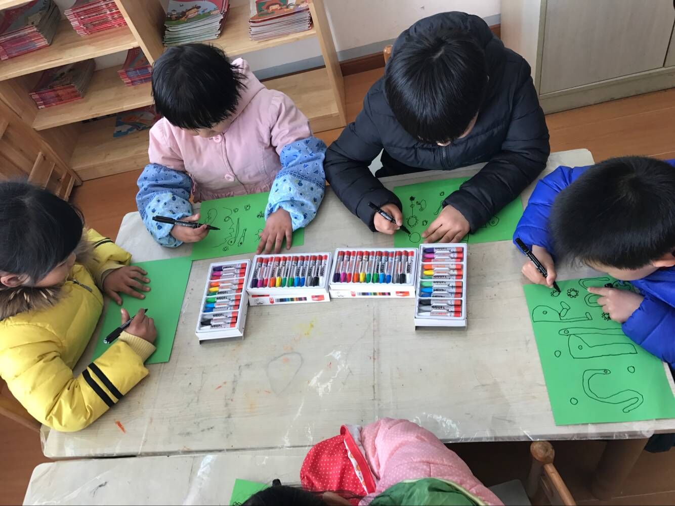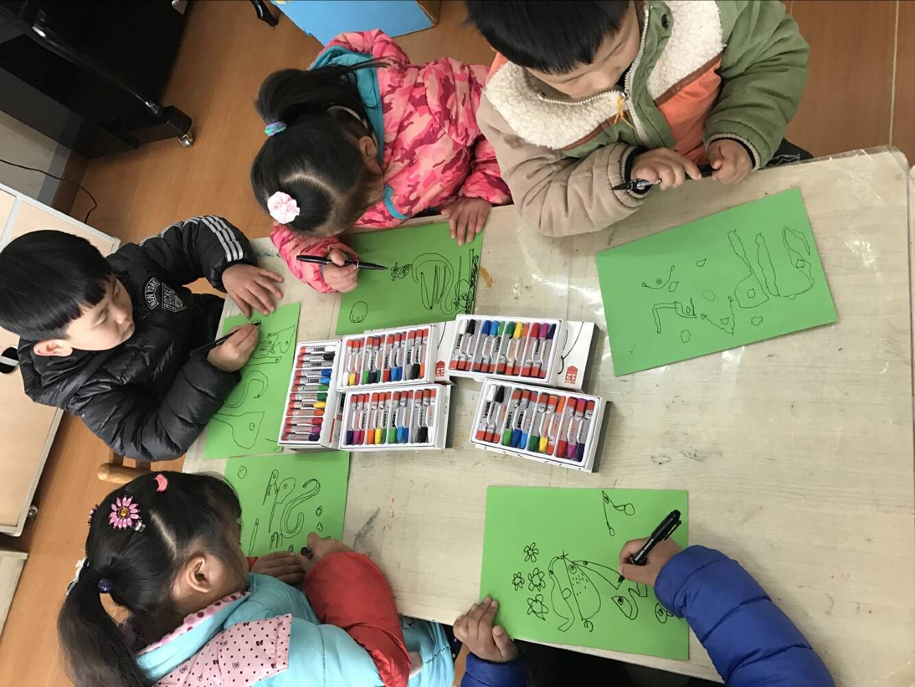 今天宝贝们的美术活动是借形想象,对春天字母进行想象,宝贝们画的可仔细啦,有的添画了小老鼠;有的添画了小鸟;有的添画了小蛇……并给他们添上了青青的草地~嗯!春天真的来啦~
