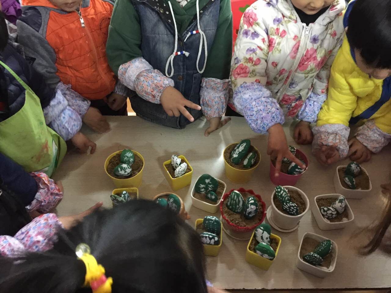鹅卵石是我们生活中常见的,把鹅卵石变成仙人掌需要宝贝们的想象,为其添上尖尖小小的刺,你喜欢我们的仙人掌吗……