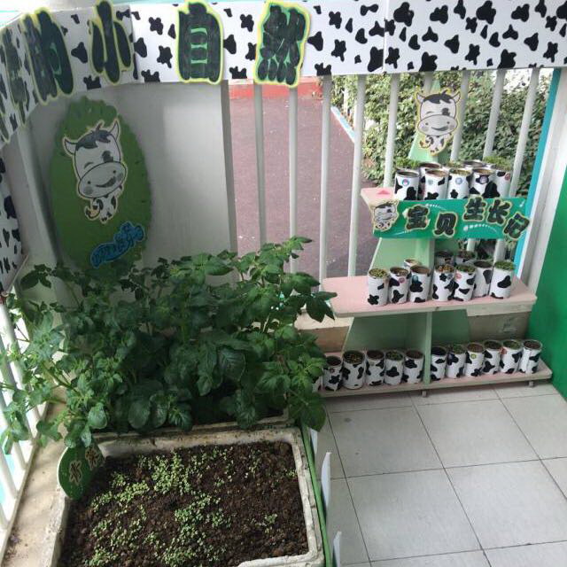 春天的脚步早就踏进了百花丛中,一片片绿油油的景色,让人感受到生机勃勃的大自然真美!瞧!小牛班的自然角也是那么漂亮!这里有孩子们的土豆宝贝,它们在争抢着比比谁最高。青菜宝宝有些迫不及待了,也钻出了小脑袋向春姑娘问声好。大蒜宝宝们也来凑热闹了,它们排着整齐的队伍,伴随着春的韵律跳起了舞蹈。小朋友和他们在幼儿园度过美好的一天!