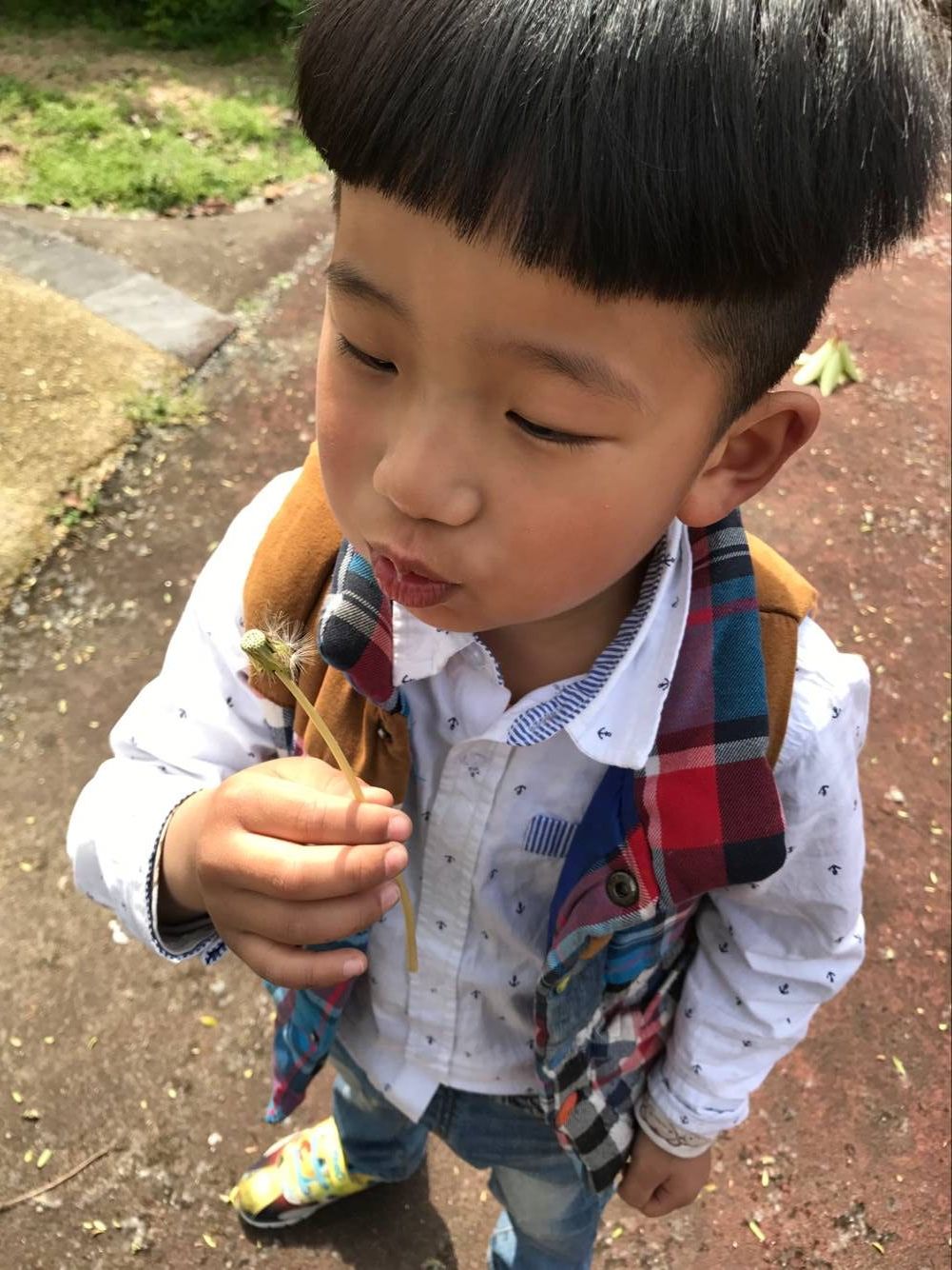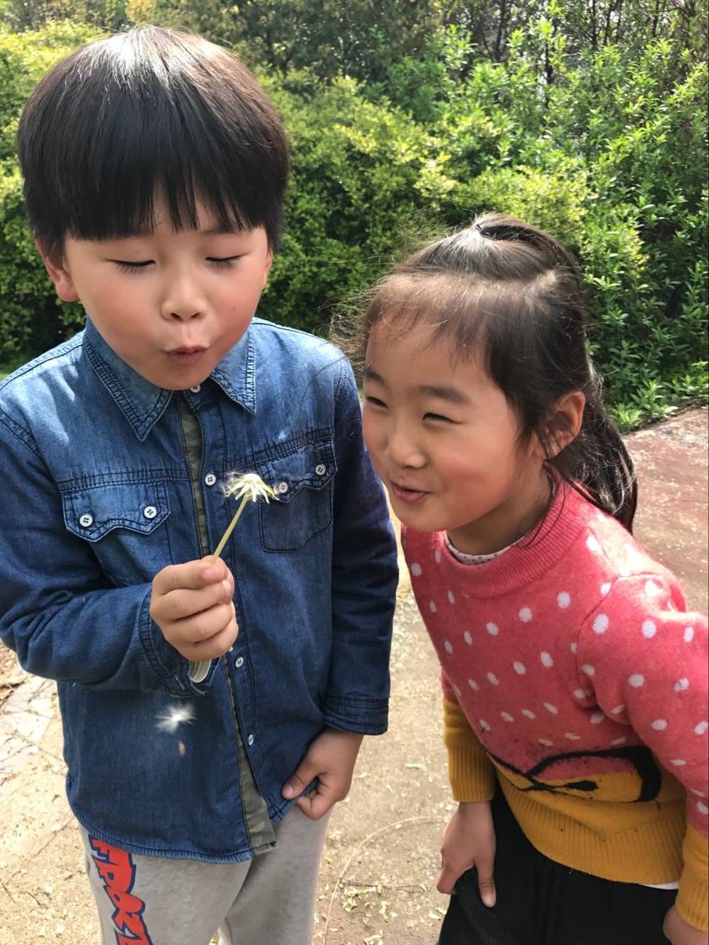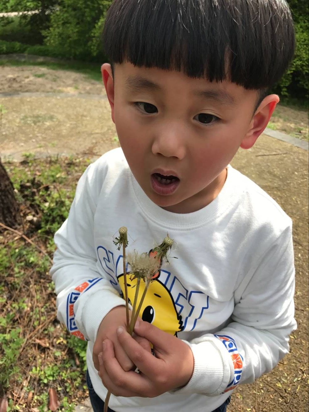 今天的游戏是大型玩具,孩子们在滑滑梯旁的草地上发现了蒲公英,感到非常开心,和孩子们说了蒲公英的种子是借助风传播的,孩子们的争着想来吹一下,可有趣了。