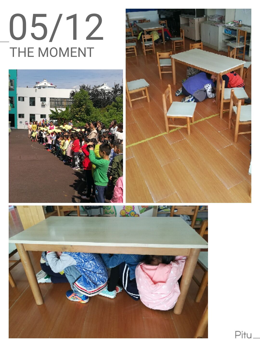 今天我园进行了“防震减灾”活动,当警报拉响时小朋友们快速的钻到桌子下面进行躲藏,体验了一把地震来临时的感觉,下面我们一起来看看吧!