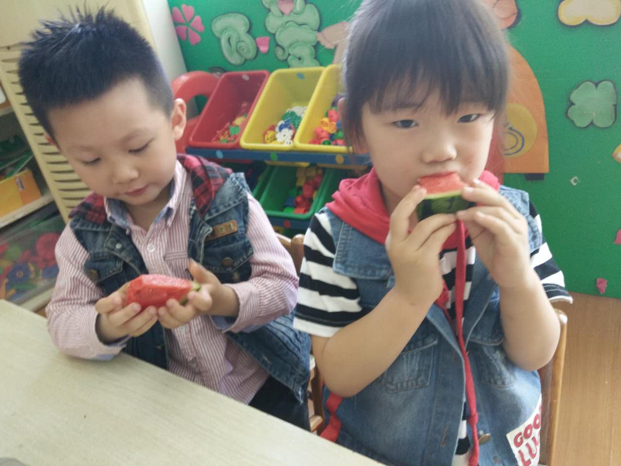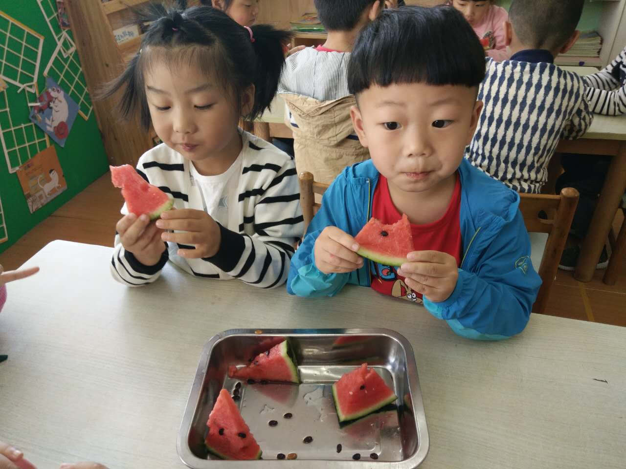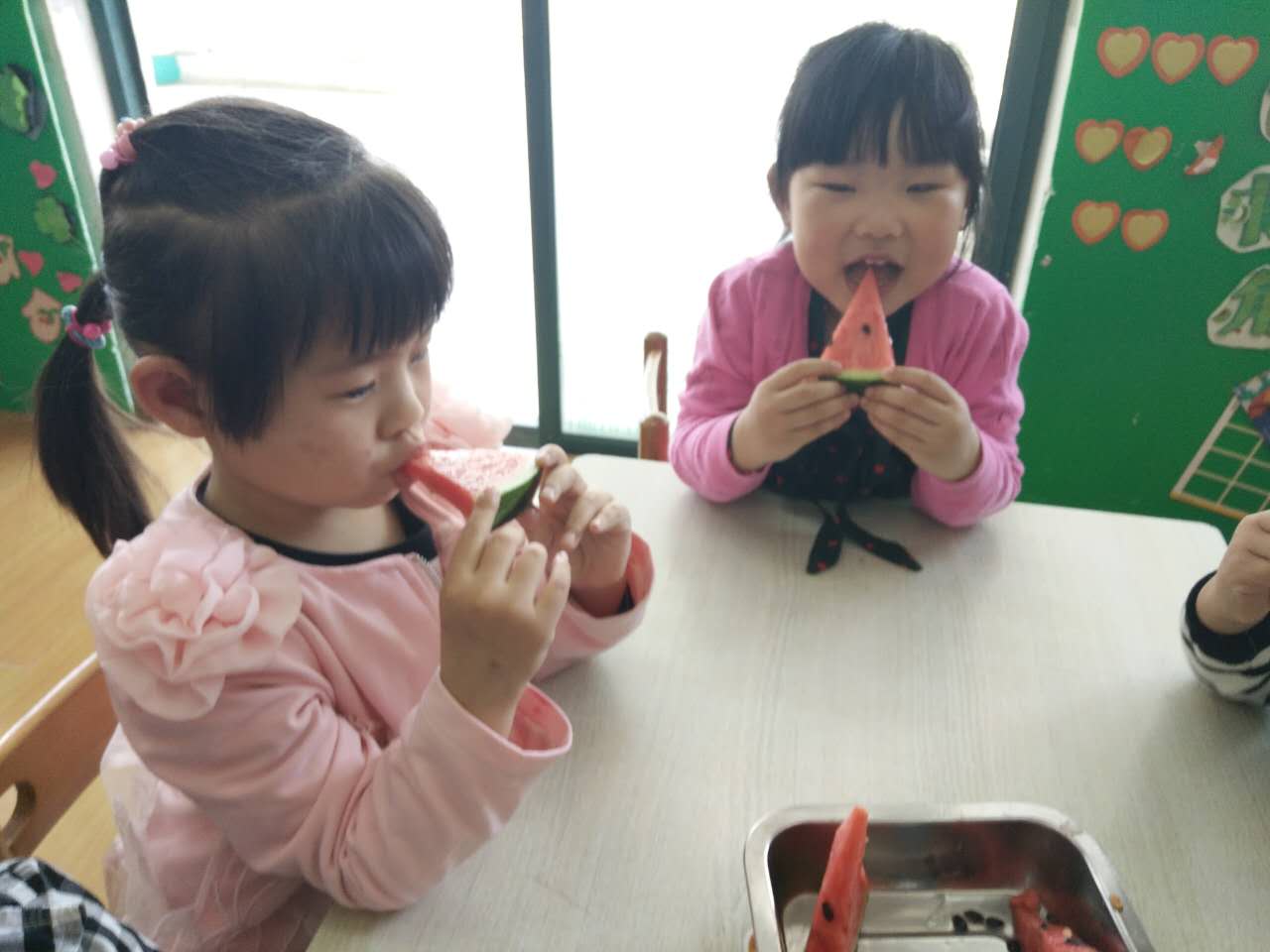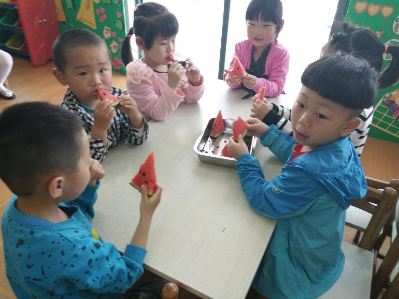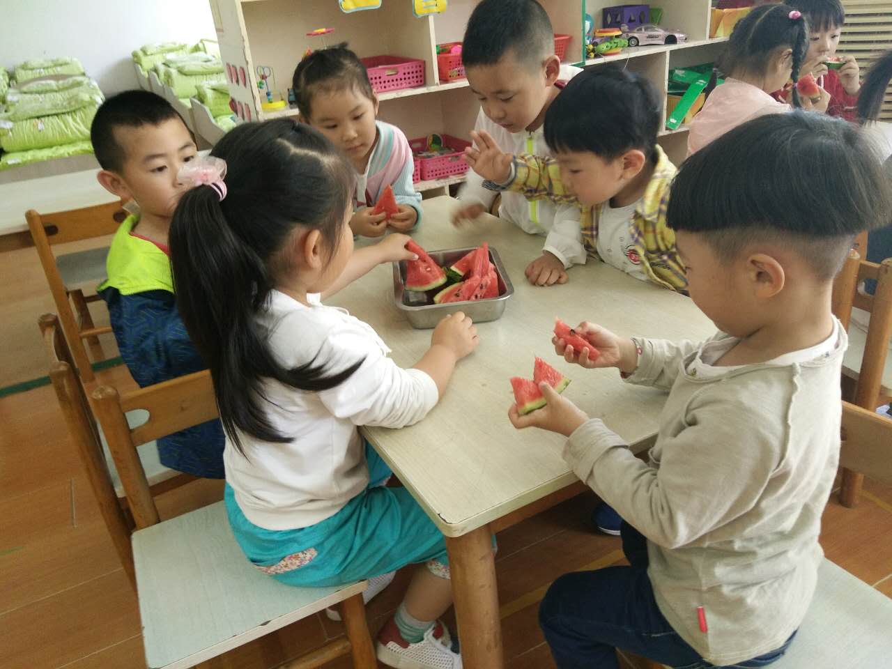 天气越来越热了,小朋友们都穿上了漂亮的裙子和短裤,原来夏天向我们招手了,甜甜的西瓜又大又甜,瞧瞧,我们在分享甜甜的西瓜,虽然西瓜甜甜的,但是我们的心里更甜!我们现在学会了分享,原来分享也是一种快乐!