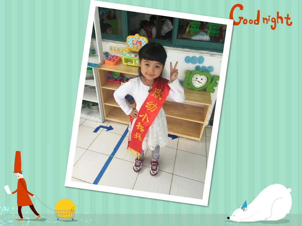 本周的礼仪小标兵是陈梦萱小朋友,我们一起拍拍小手鼓励一下她吧!
