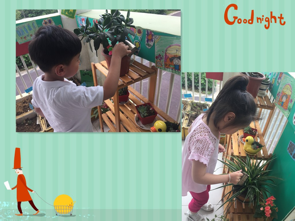 本周是郭易泽和王若涵小朋友担任小小值日生哦!一大早我们俩就早早的来到幼儿园给自然角里的植物浇水哦!你看我们把它照顾的多好呀!