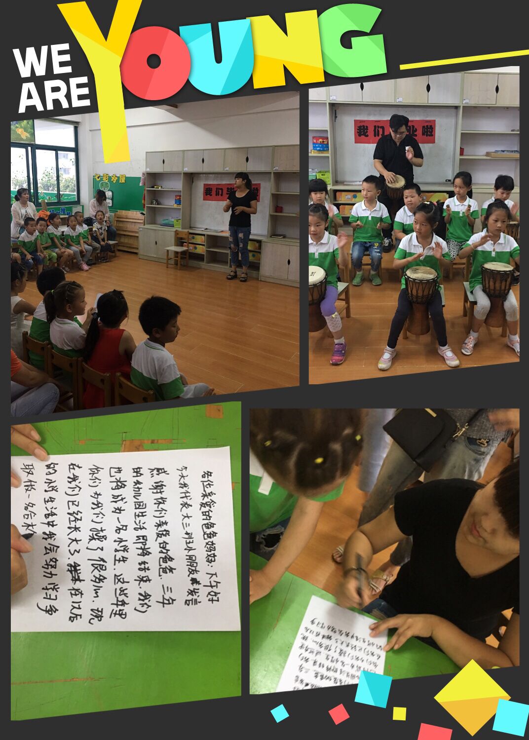 本学期是大班最后一学期,我们进行了毕业典礼,孩子们为家长表演了《感恩的心》,家长们很感动。我们还派出了小朋友代表和家长代表进行发言。家长们都非常认真的聆听。园长妈妈还给孩子们颁发了毕业证书,三位小朋友还给老师献了花。毕业典礼结束后,大家都留下来和自己的好伙伴以及班级的三位老师合影留恋,大家都非常的不舍!