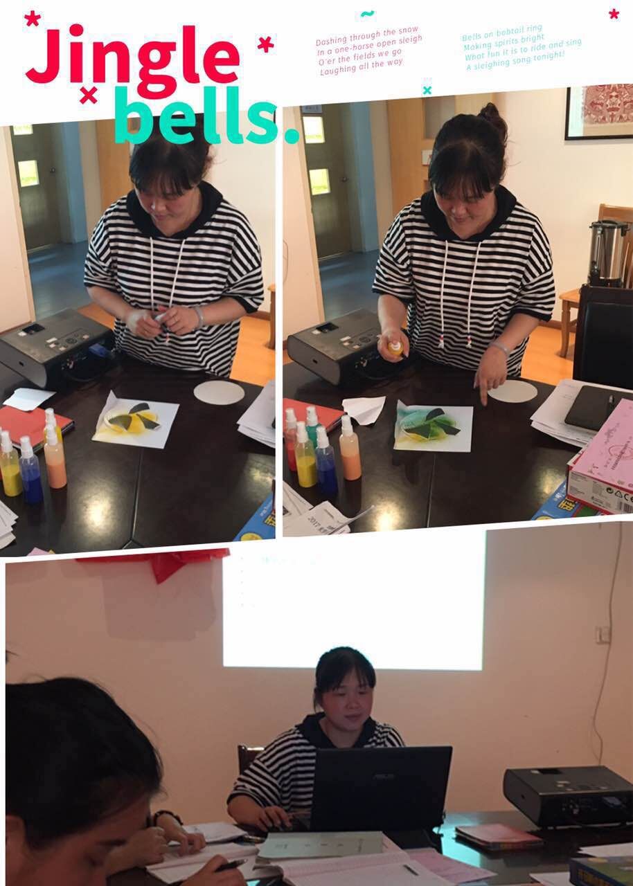 在六月初,我和芦丽萍老师一起参加上海米罗可儿的,有关幼儿园区域活动创设的学习!在长达三天的学习中,我们从理论到实践,学习了许多有关美术区域创设的方法!在幼儿园的教师业务学习中,我也将这次学习的内容进行了反馈,大家也从理论,到实践,进行了学习与操作!大家从玩颜料的方法开始,喷画、拖色、拓印等方法进行借形想象的操作,之后还讨论了如何将区角作品进行装饰,大家集思广益,想出来许多办法,在下学期中,我们每位教师也会运用到班级中去……