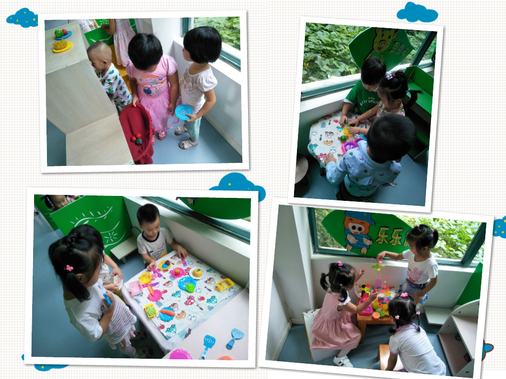 又到了孩子们玩游戏的时间啦!瞧,孩子们都选择了自己想玩的区角,娃娃家里的小朋友最多哦!看来孩子们还是很喜欢扮演一些家庭角色呢!下面我们一起走进现场看看孩子们玩的有多开心吧!