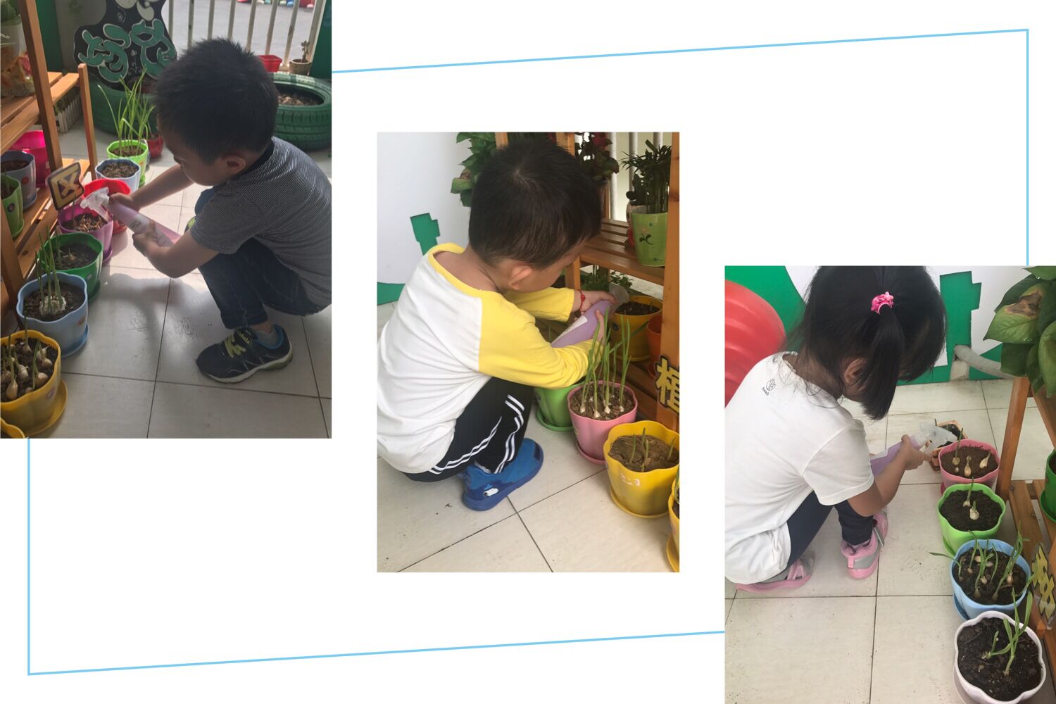 兔兔农场的大蒜越长越高啦,这都是和小朋友们的悉心照顾分不开的,每天都会让它们晒太阳喝饱水。孩子们每天都期待着自己的大蒜长高。