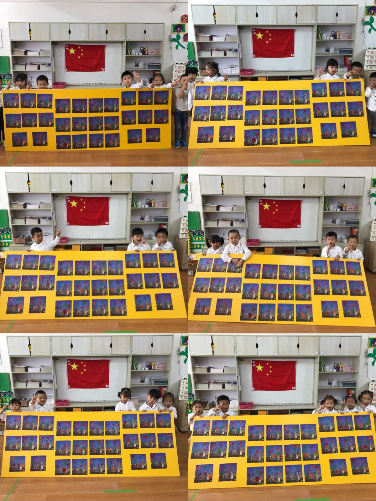 下周就是国庆节了,今天的美术教学活动孩子们画了漂亮的烟花来为祖国妈妈庆祝生日!这也是孩子们第一次在幼儿园里感受到国庆节的氛围。