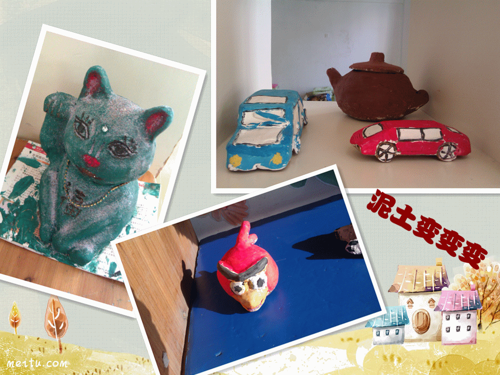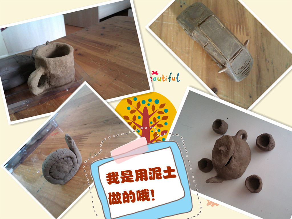 看,这是我们的“实验区”。是我们中班的一个科学教育教学活动《沙和土》的延伸。我们在“沙和土”中加入水后,孩子很快发现了沙加入水后变得澄清,土加入水后,变得粘稠!有个孩子说:老师,这个可以像油泥一样的捏的。”于是,我就在我们班的自然角设置了这样的亲子共同参与的一个“泥土实验”。