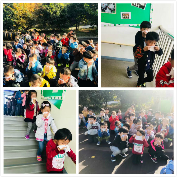 这周我园进行了集体的消防演习。在演习之前,我们和小朋友一起讨论了发生火灾时正确的应对方法的,小朋友们都运用了以往的经验积极讨论。在演习开始时,能在第一时间用毛巾捂住口鼻,在老师的带领下,有序的疏散!为弟弟妹妹们做好了榜样!