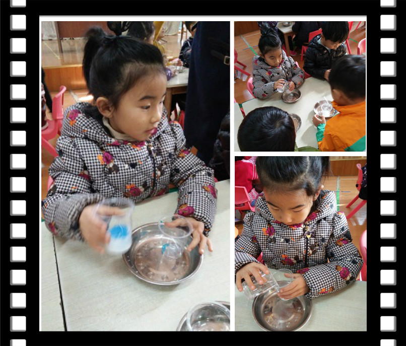 这个“魔术”是大班年级组四个班级一起观摩的,活动中我们班的戴玉颖小朋友参与了操作,看,她多认真啊!~