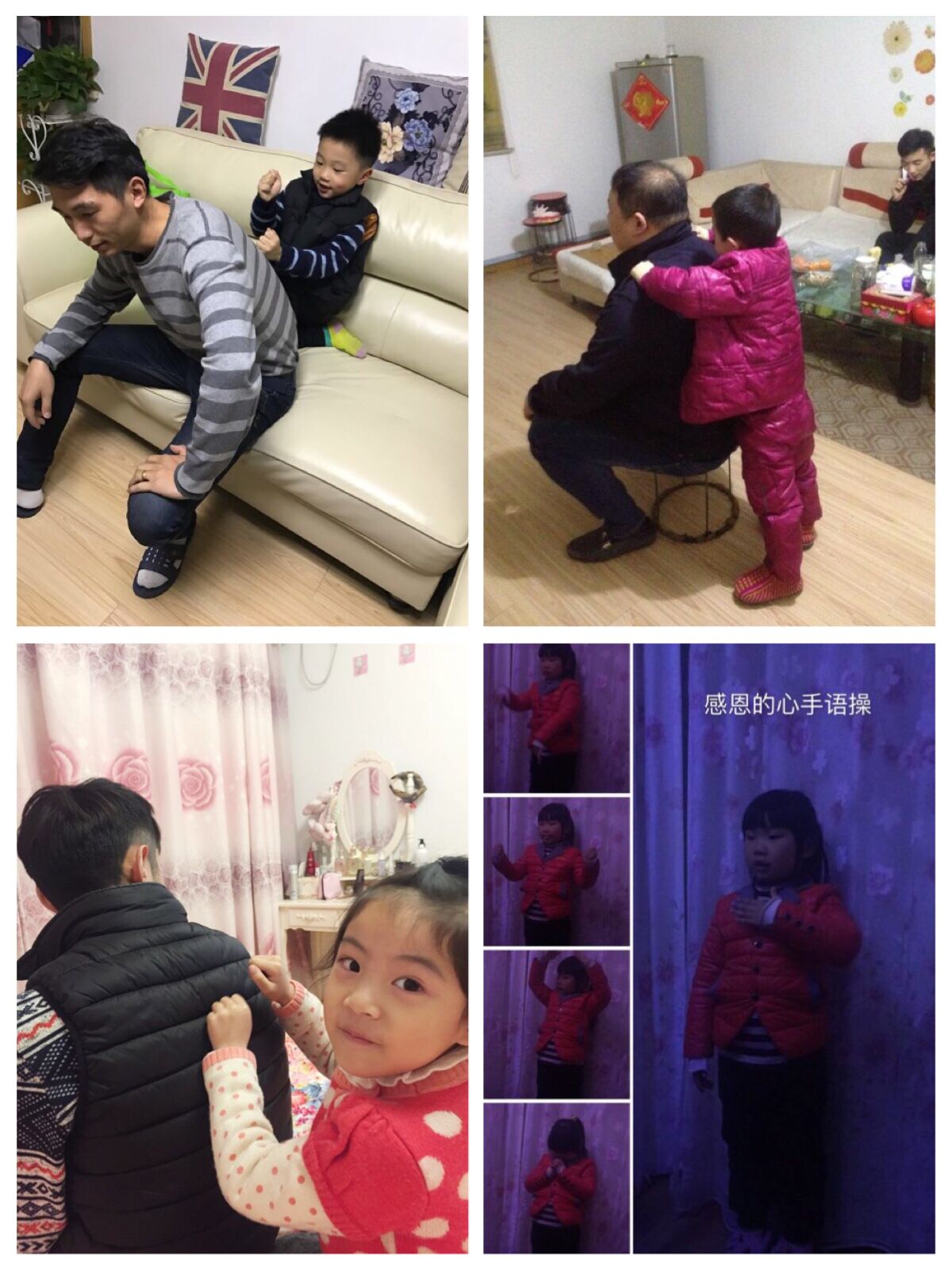 一年一度的感恩节又到了,我们小朋友为了感谢自己心爱的人,做了不同的有趣的事,有的给妈妈捶背,有的给爷爷奶奶梳头发,有的还画了漂亮的画送给他们,同时还给亲人们说了感谢的话语,好温馨的画面啊!快来瞧瞧吧!