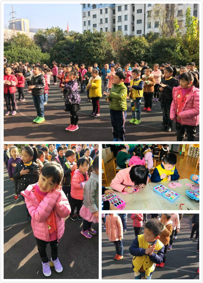 今天的感恩节活动,我们组织了全体幼儿到操场,一起跟随音乐做了“感恩的心”手语舞蹈,最后孩子们互相拥抱并说出了祝福,下午孩子们自己制作了心意卡,并在放学的时候送给家长。