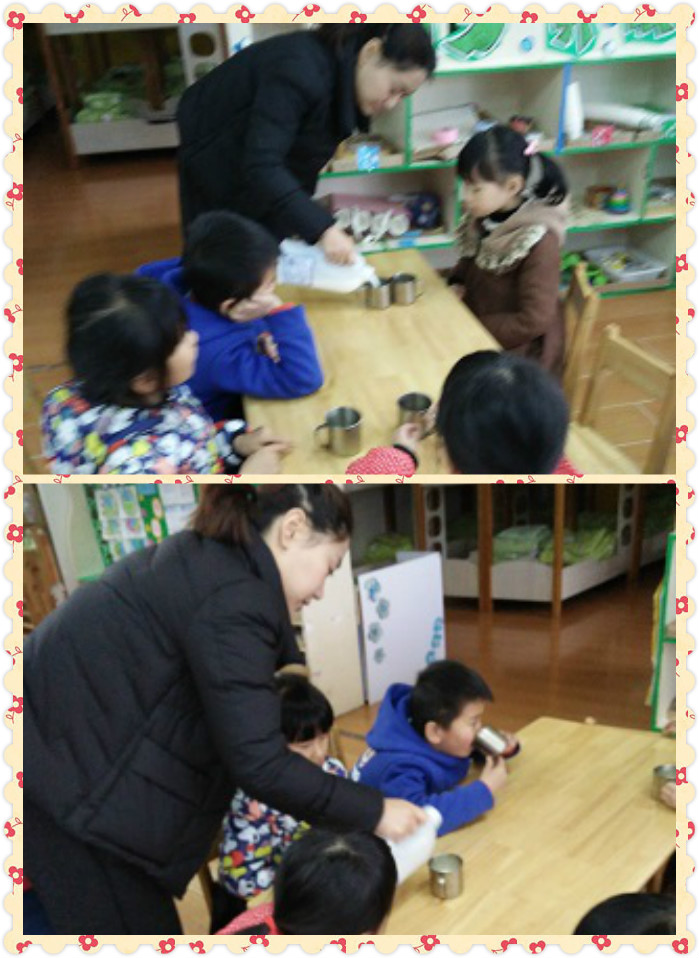 首先,她早上先陪同孩子们进行了早操锻炼。随后又帮助孩子们倒牛奶辅助大家吃早点。