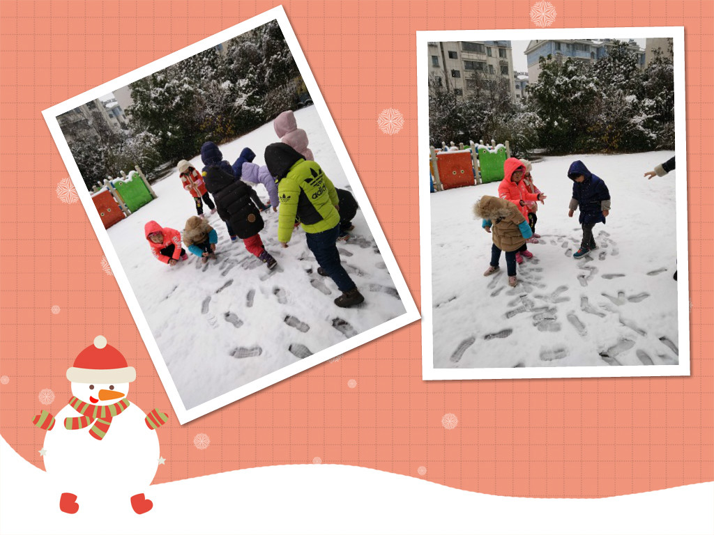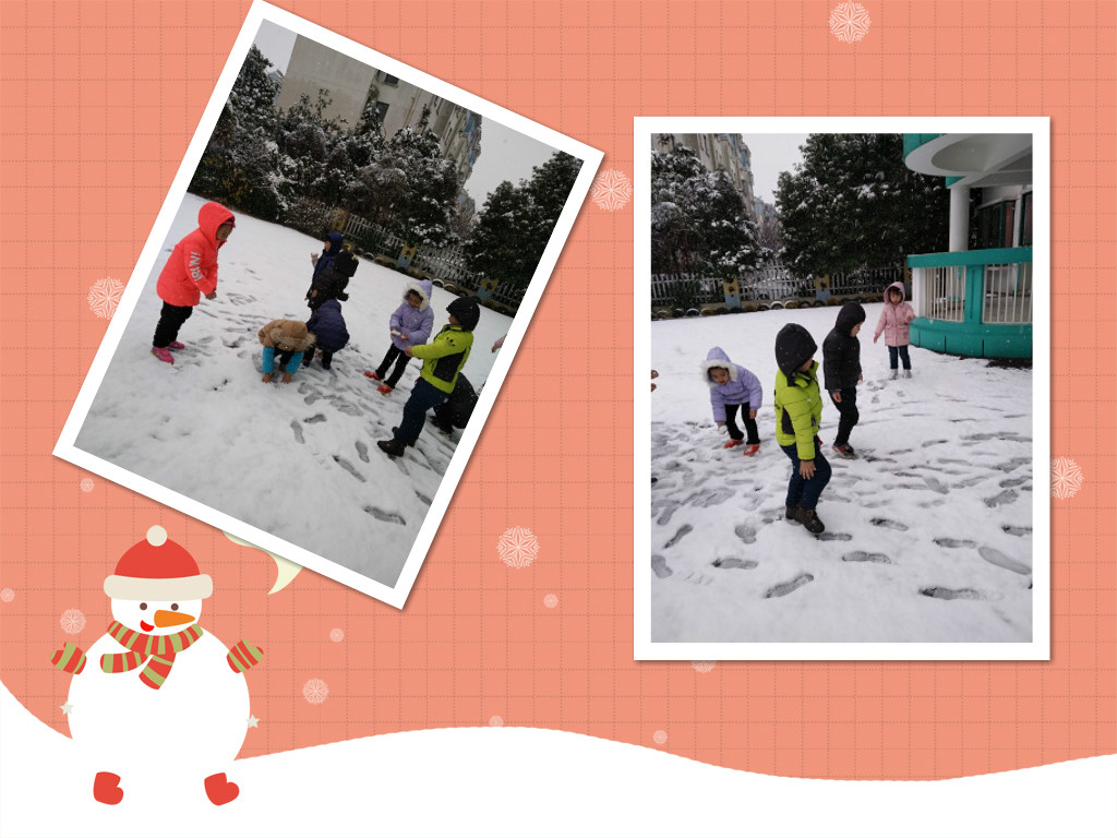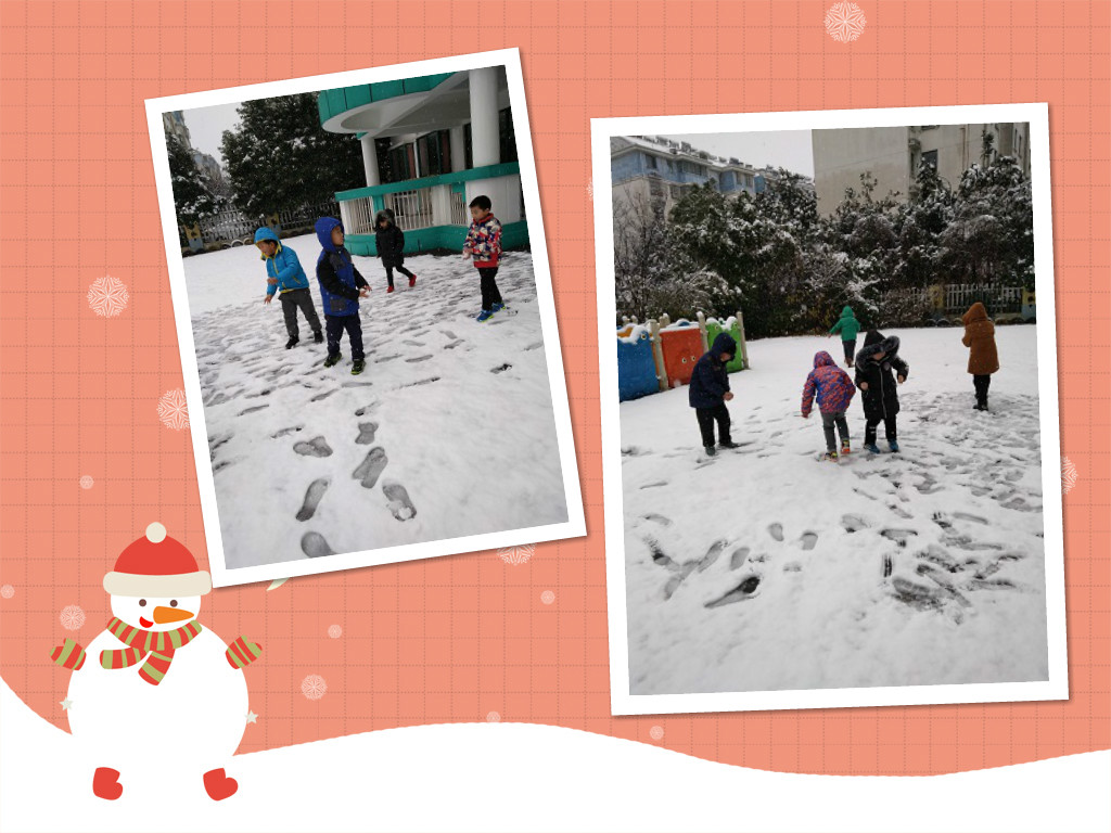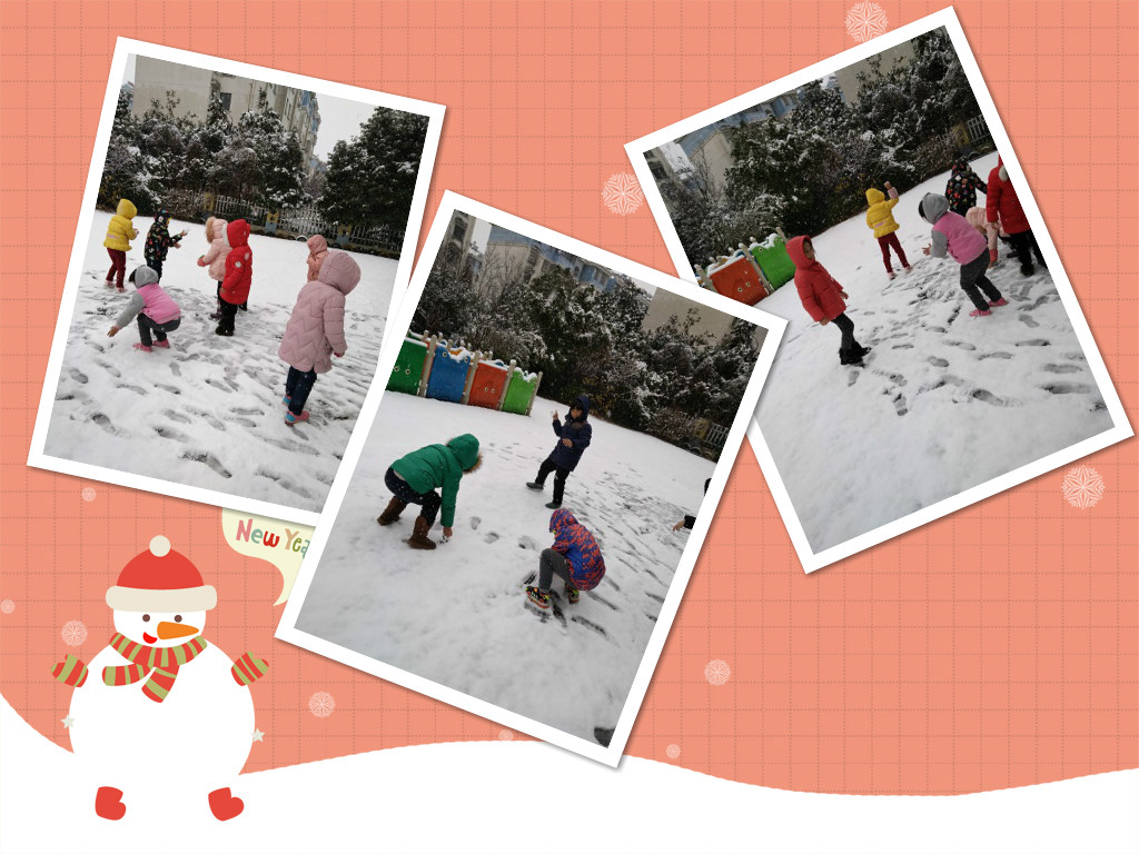 今天下了新年的第一场雪,孩子们一大早来就兴奋的喊道:“老师,下雪了,好漂亮~!”有的孩子说:“好想摸一摸。”还有的说:“好想堆雪人啊~!”为了满足孩子们,我们决定真的带孩子们去和雪来一次亲密接触。