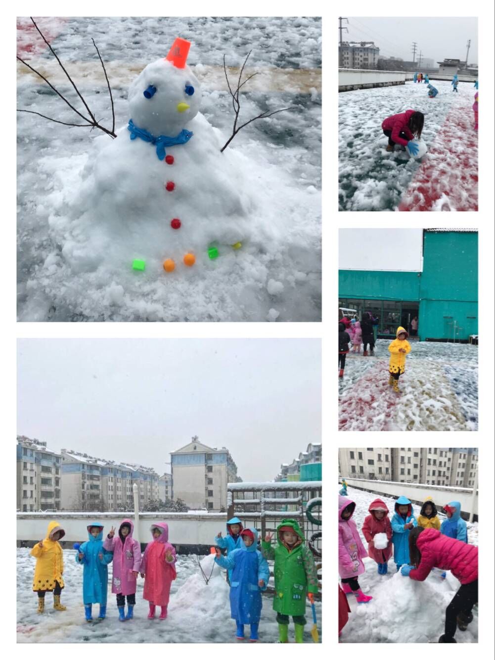 雪花很大,天气很冷。可雪下得越大,玩雪的孩子们越活跃。踩雪的棉鞋湿透了,不冷;攥雪的小手冻红了,不寒。大孩子和小孩子共同努力下,一个可爱的雪宝宝诞生了……你好,初雪!我们在寒冷中收获成功的喜悦,心暖暖的!