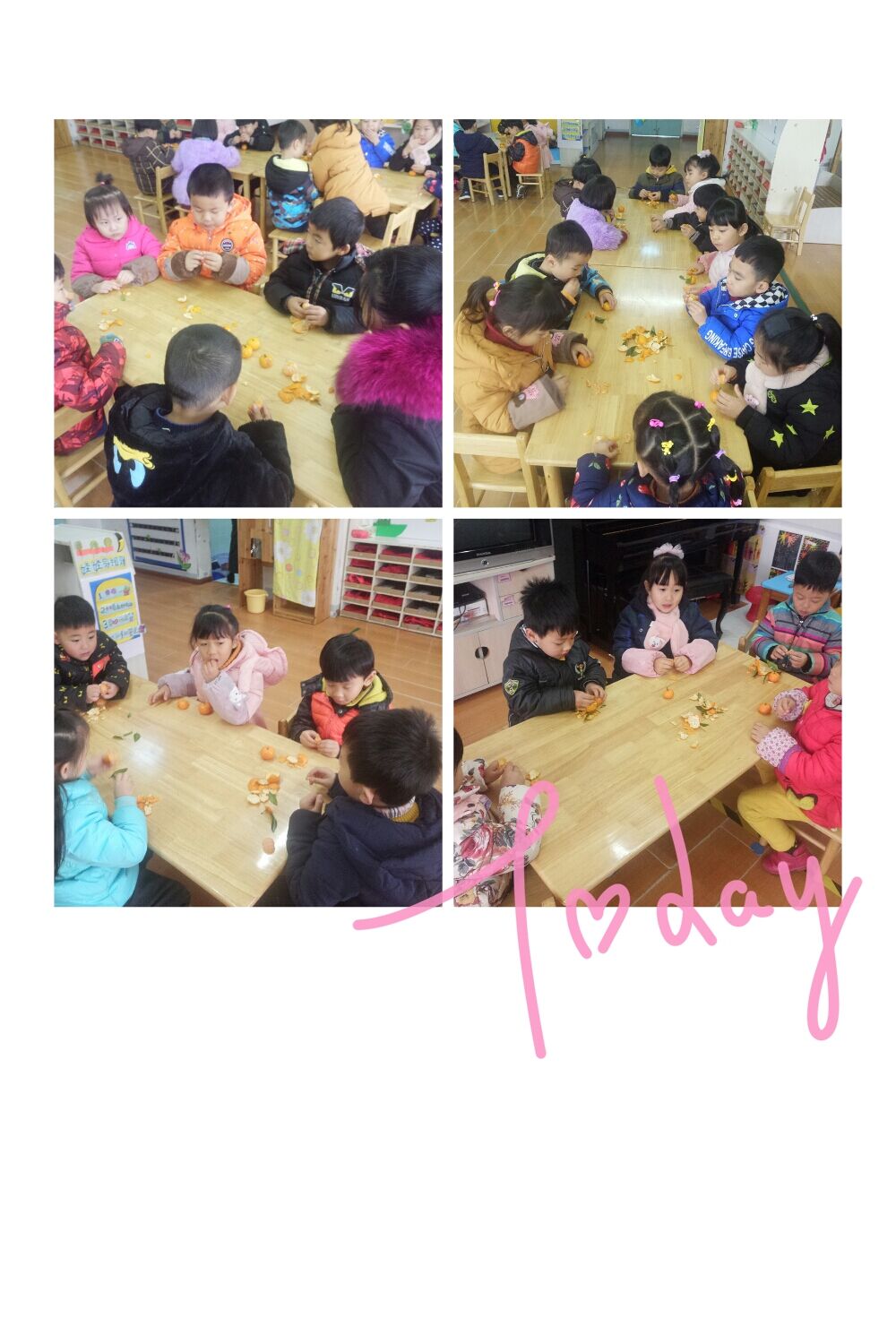 本周,我们辰辰的妈妈带了好多橘子,带来和小朋友们一起分享,看他们吃得不亦乐乎的样子,可爱极了!这些桔子被他们吃的,都感觉很甜呢~孩子们用最真实的笑容来感谢辰辰的妈妈!我们来看看吧