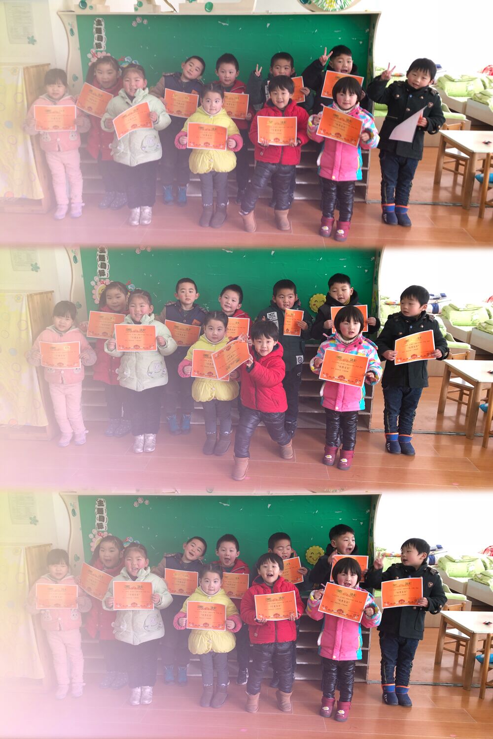小朋友经过一学期在幼儿园的学习生活,各方面的能力都得到了提高,在学期末的测评中获得了较好的成绩,要放假了,每个小朋友都拿到了自己的小奖状,可开心啦!
