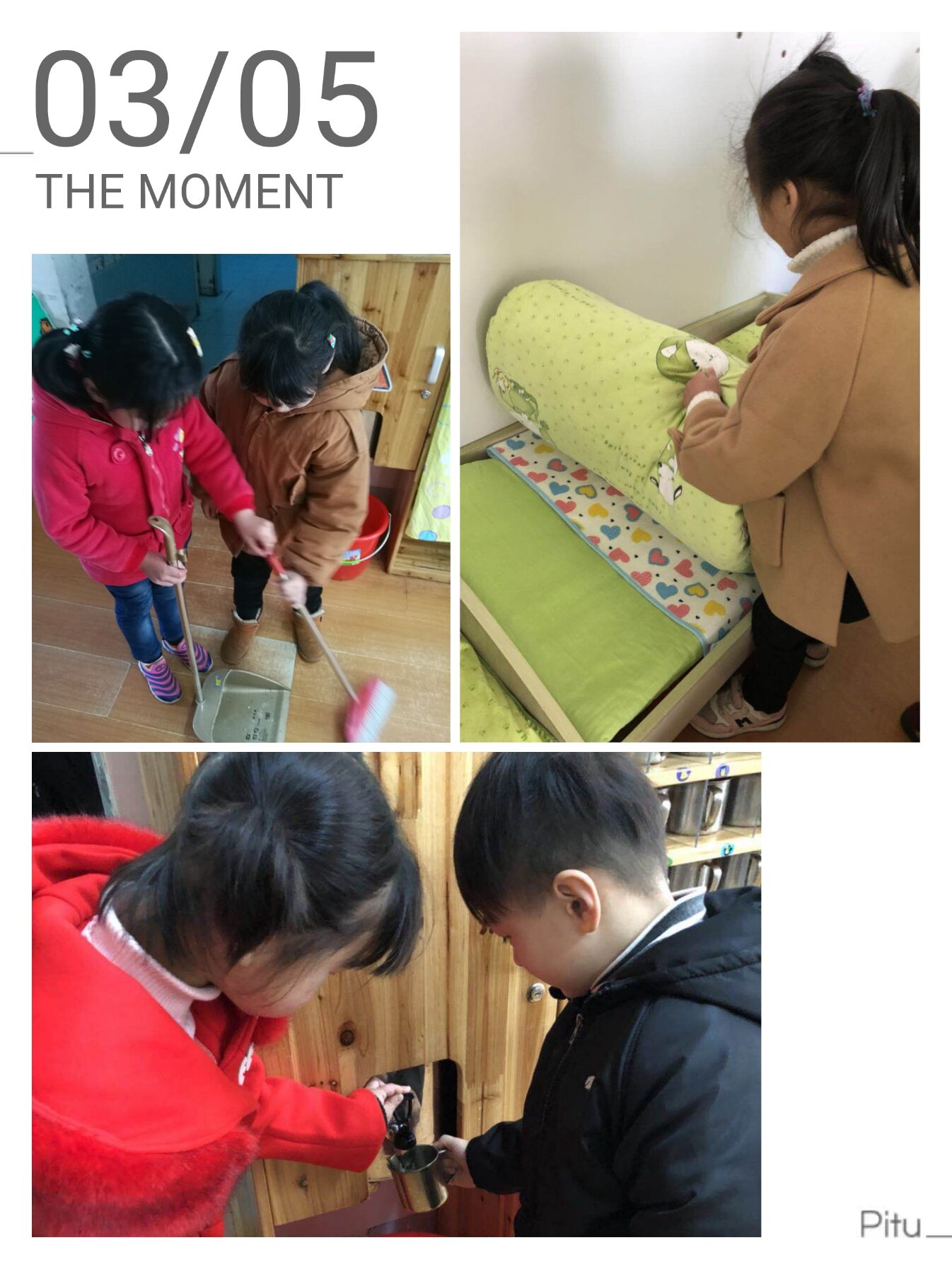 今天是3月5日学雷锋日,雷锋同志是伟大的共产主义战士,小朋友们也学习雷锋精神来到小班帮助小班的弟弟妹妹们叠被子、倒水、扫地等活动,我们一起来看看吧!