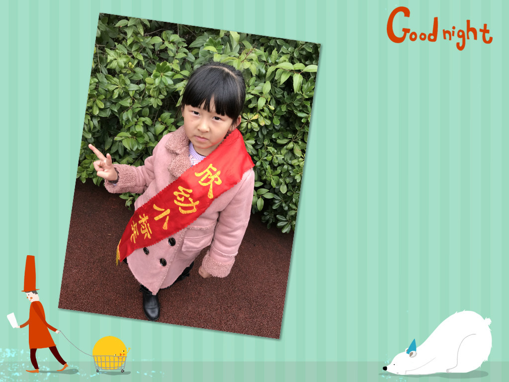 本周的礼仪小标兵是乐瑾甜小朋友,新学期她的进步很大哦,希望你继续努力哦!