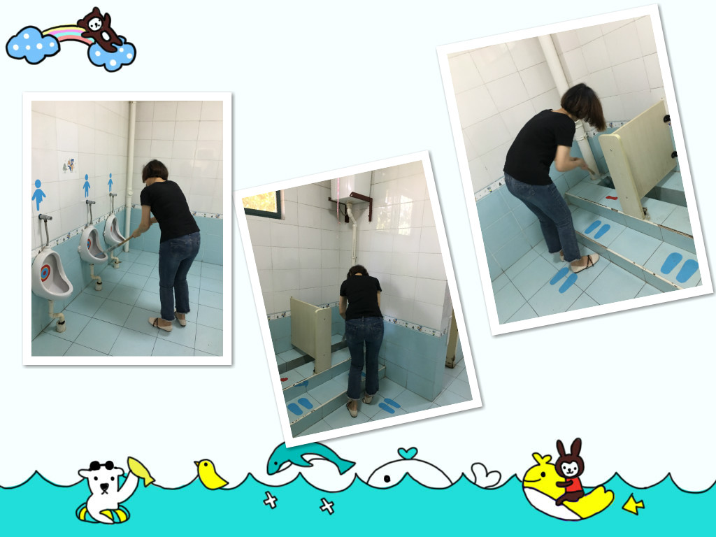 走进我们小四班的厕所,干净清爽,原来是我们的保育老师认真洗刷的成果哦!