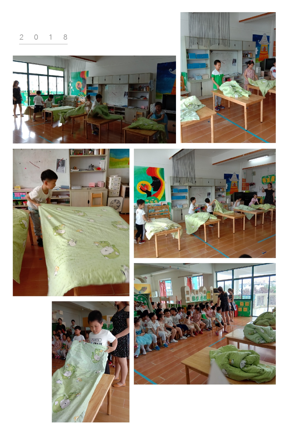 为了提高孩子们的动手能力以及自我服务意识,今天上午我园开展了自我服务比赛活动,我们大班的孩子比赛的项目是叠被子,孩子们都能踊跃的参与,并且表现的都很棒哦!一起来看一看活动的精彩画面吧!~