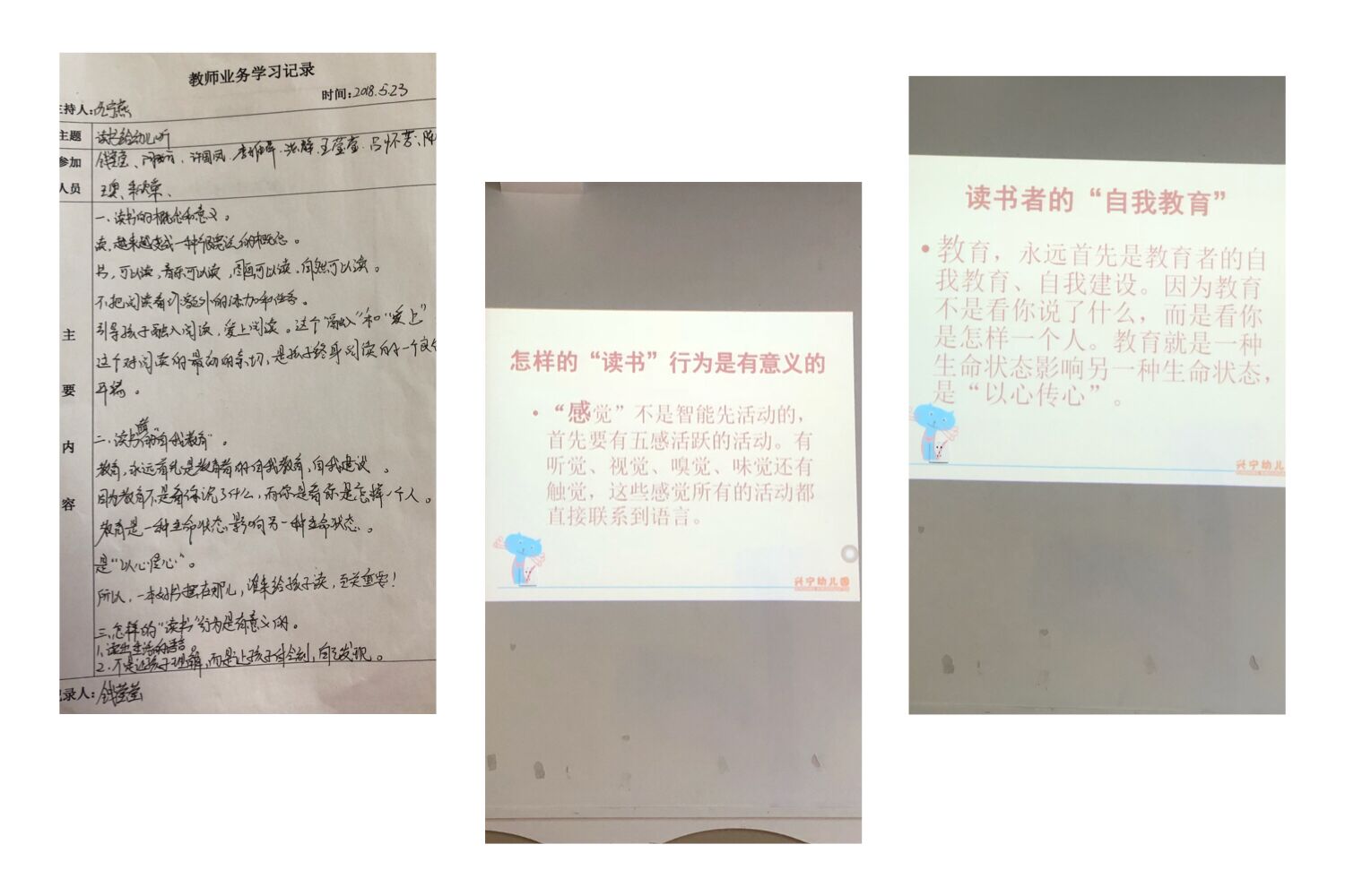 本周三中午12:30,我园青年教师聆听了兴宁幼儿园仇宁燕园长带来的讲座——《读书给幼儿听》,在讲座的过程中,青年老师们认真听仇老师带来的案例分享,以及记录下PPT当中的重要内容。读书活动对于我们幼儿以及老师来说,都是一件非常有意义的事情,怎么读,如何去读,都是我们老师需要学习和提高的。我相信仇老师给我们带来的这节讲座,会让我们老师在以后的语言教学活动中受益匪浅!
