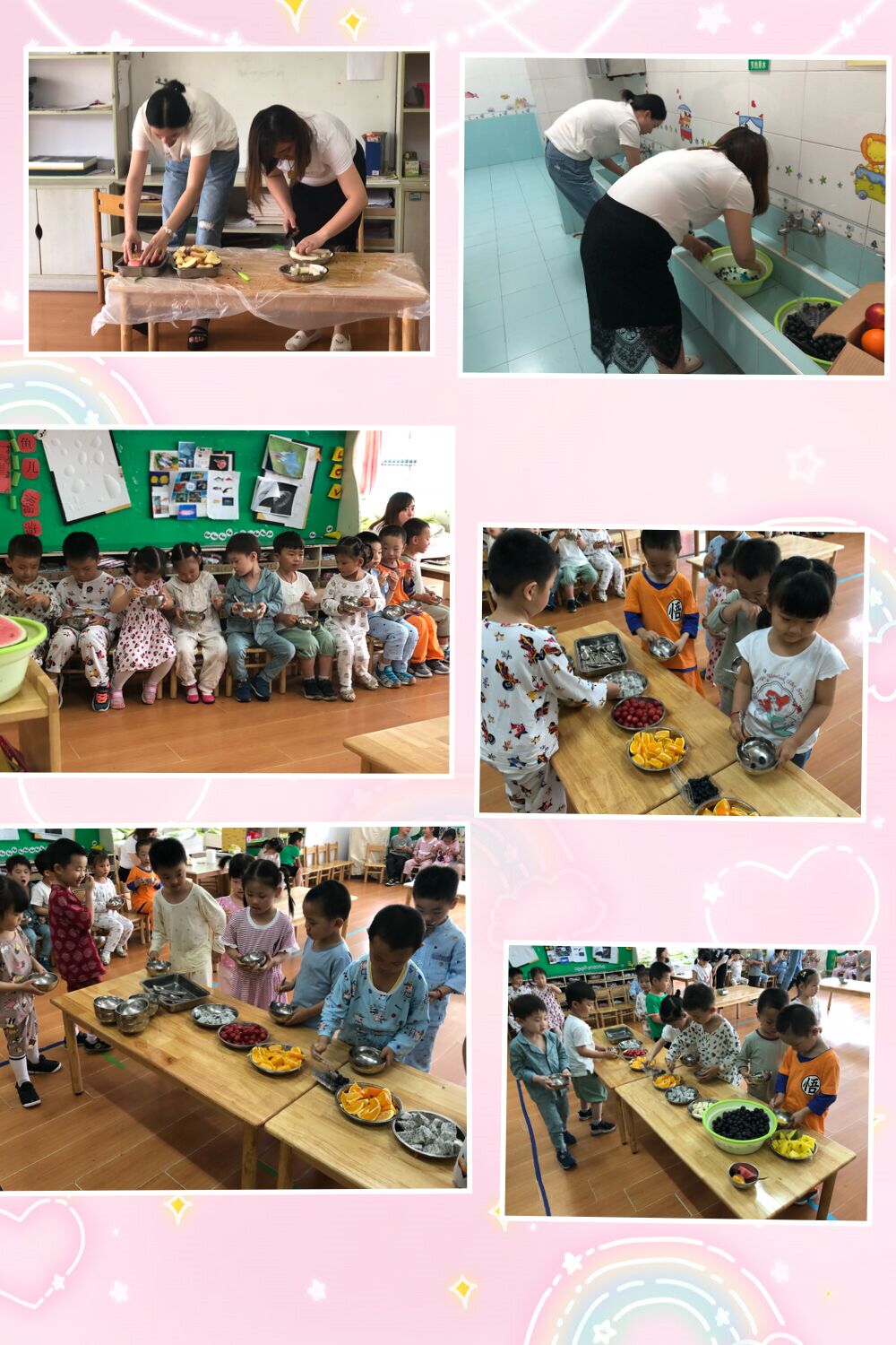 六一节活动结合了本月的主题《水果多多》,我们在班上开展了水果自助分享会,并邀请了两位家长帮孩子们清洗、切水果。孩子们对自助这种形式特别的新奇,还有小朋友说这样吃水果就好像逛超市一样,孩子们吃的不亦乐乎。祝孩子们六一儿童节快乐~健康成长~