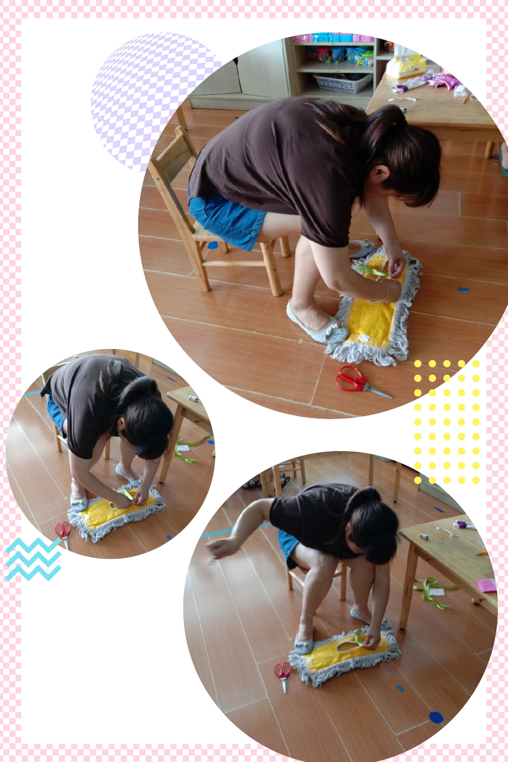 为了更细致的做好班级卫生消毒工作,我们亲爱的保育老师今天把所有的清洁工具全部进行了清洗和暴晒,并且检查了所有用具的使用情况,针对发现问题的用具,保育老师也及时做了修理与调整,为保育老师的细心点赞!~