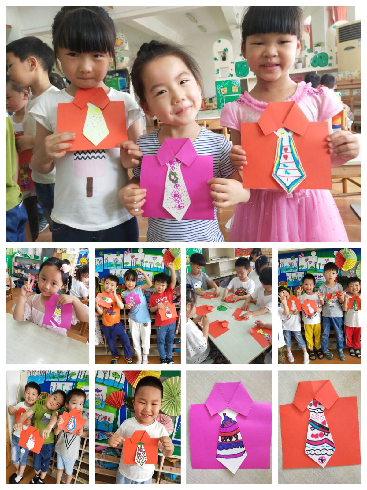 父亲节马上到了,孩子们想送给自己的爸爸们一个礼物,大家就一起亲自动手制作了一件好看的上衣,一起来欣赏吧!孩子们很认真的样子,一边设计一边绘图,还给领带涂上了漂亮的颜色,今天我们要带回家送给爸爸啦,希望给爸爸一个惊喜!