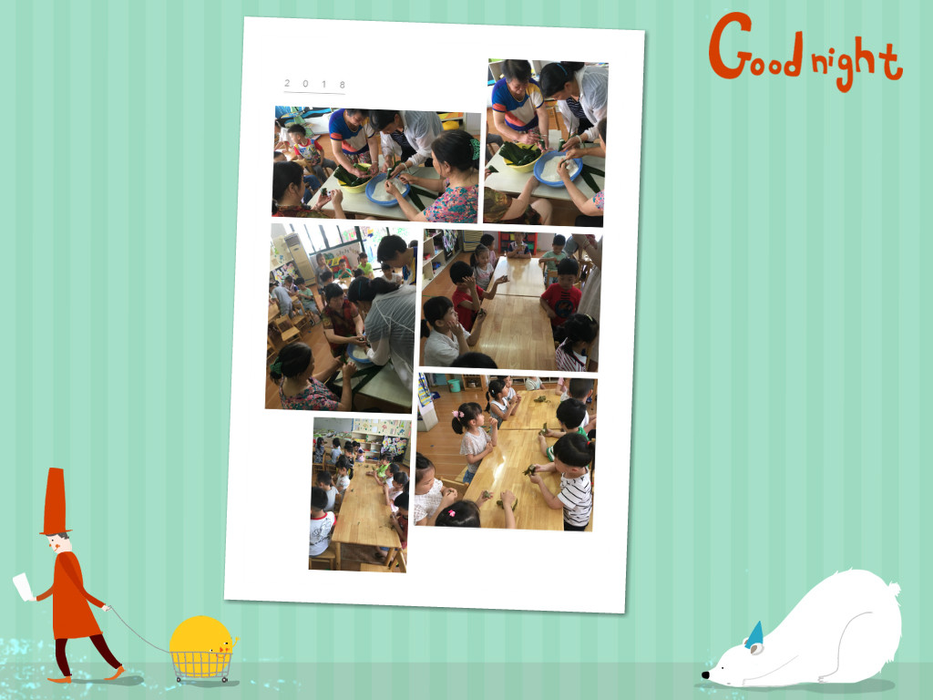 今年的端午节碰上了父亲节,今天我们请了班级四位小朋友的奶奶来给孩子们进行包粽子。奶奶们非常的热情,一边说一遍告诉孩子们如何包粽子,并且有的孩子还动手自己尝试了包粽子,大家在一起包粽子真是开心呀!