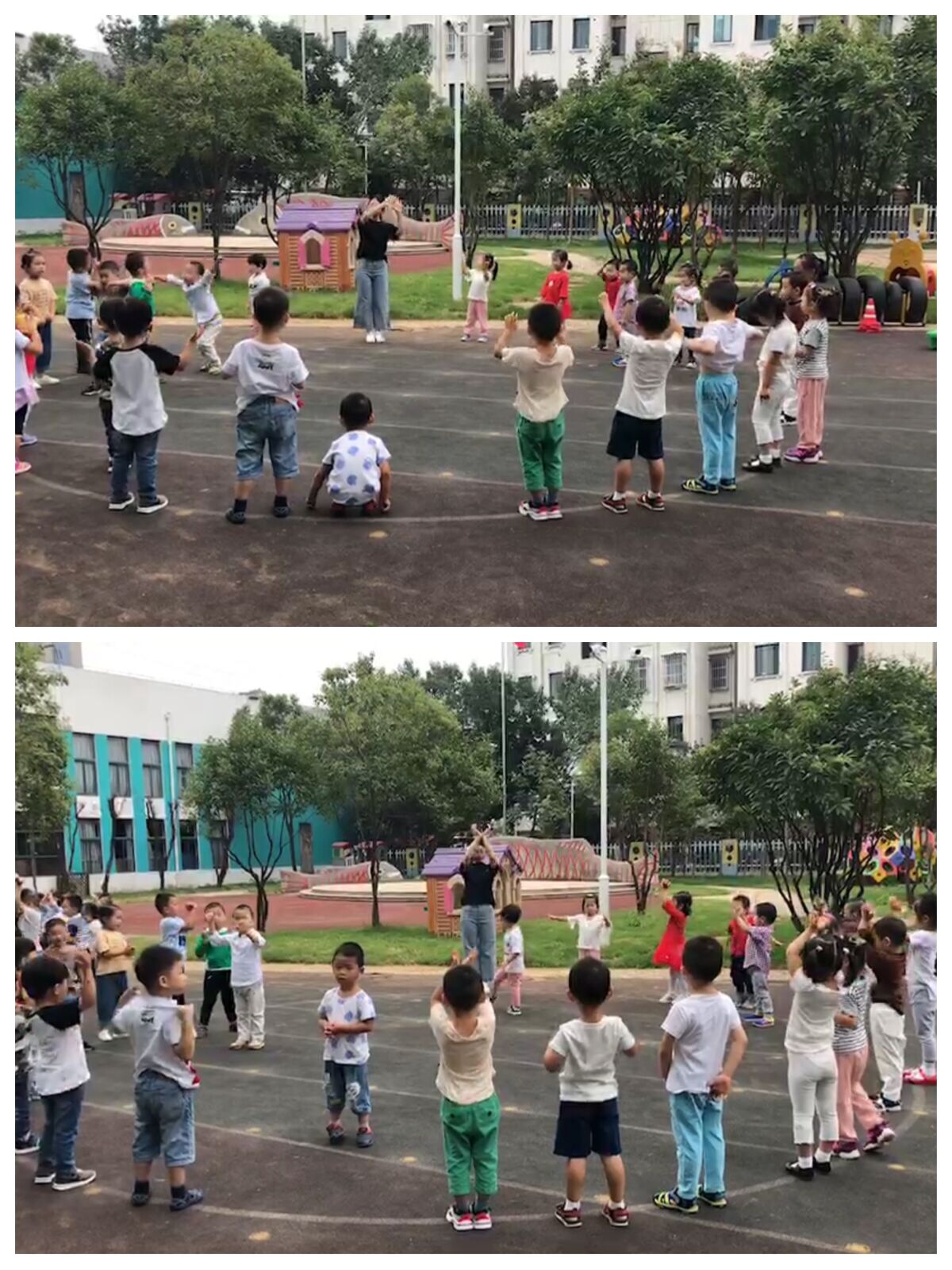 今天宝宝们第一次出去做早操啦,大家一起站在圆圈线上,听到音乐跟着老师做早操,动动小手,动动小脚,可开心啦!