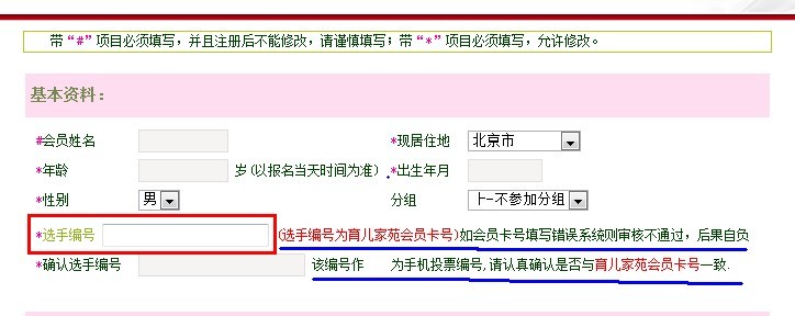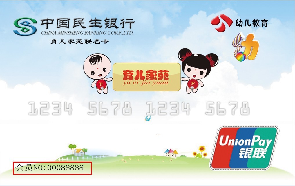 填写“选手编号”时,填写内容为中国民生银行发行的“育儿家苑会员卡”左下角的会员卡号,如图5所示。该编号将作为选手手机投票的编号,若填写错误将造成审核不通过,无法通过手机给该选手投票的严重后果,幼教频道与曼布网不承担相应责任。