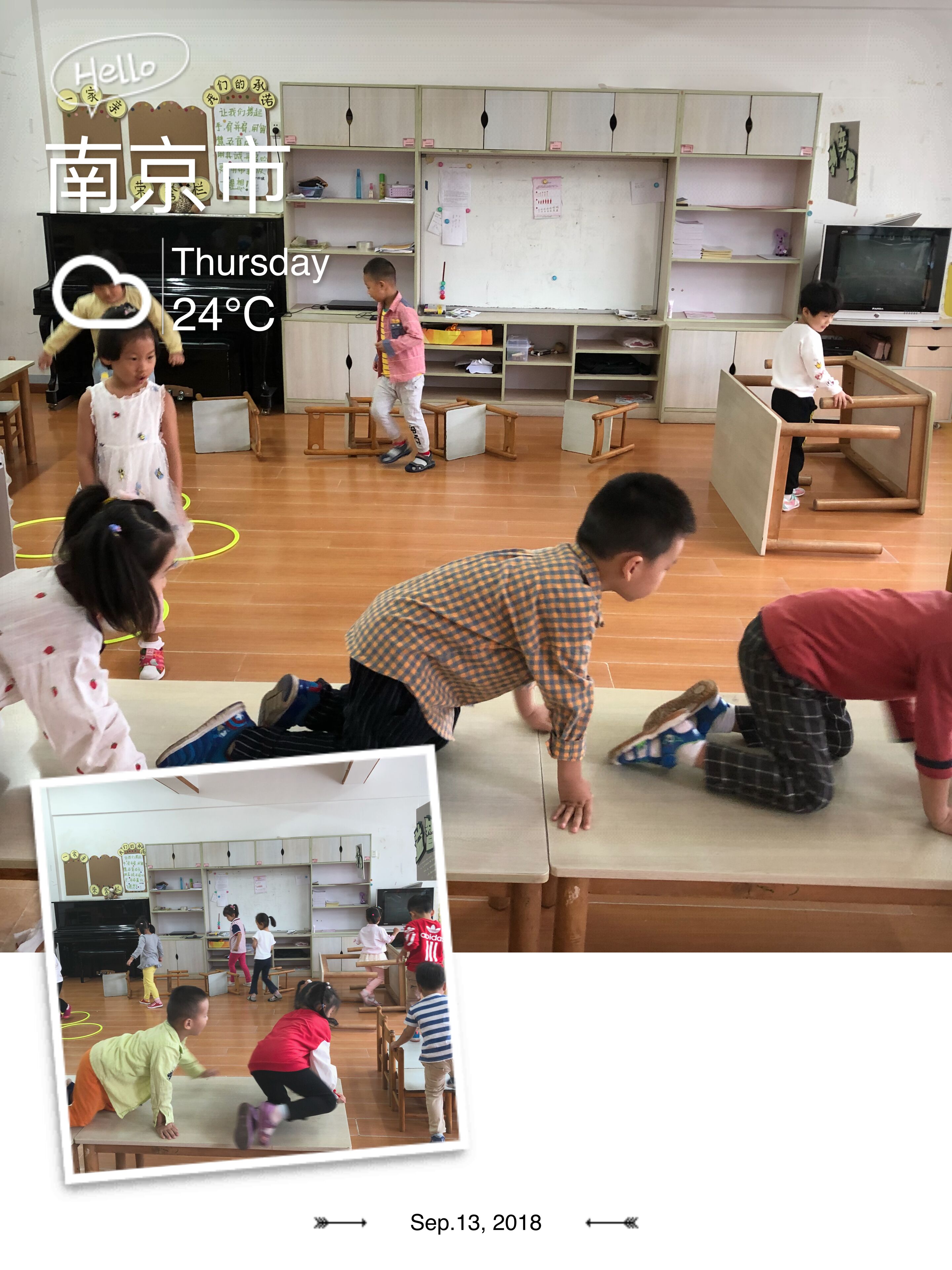 今天早上天上下着小雨,可是却丝毫不能影响我们小朋友晨间锻炼,我们利用班级的桌椅,让小朋友练习钻、爬、跳等能力。中四班的小朋友们都能有序排队,不推不挤,非常棒!