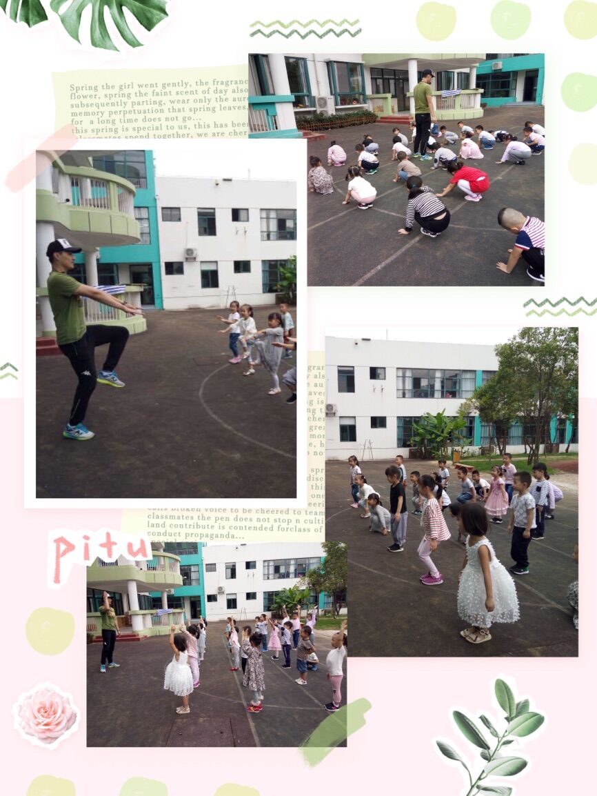 幼儿园里来了一位男体育老师,我们可开心啦!瞧,今天余老师不仅教我们身体如何变长,而且还教我们如何做高抬腿的动作呢,我们可开心啦,期待余老师教我们更多的本领 。