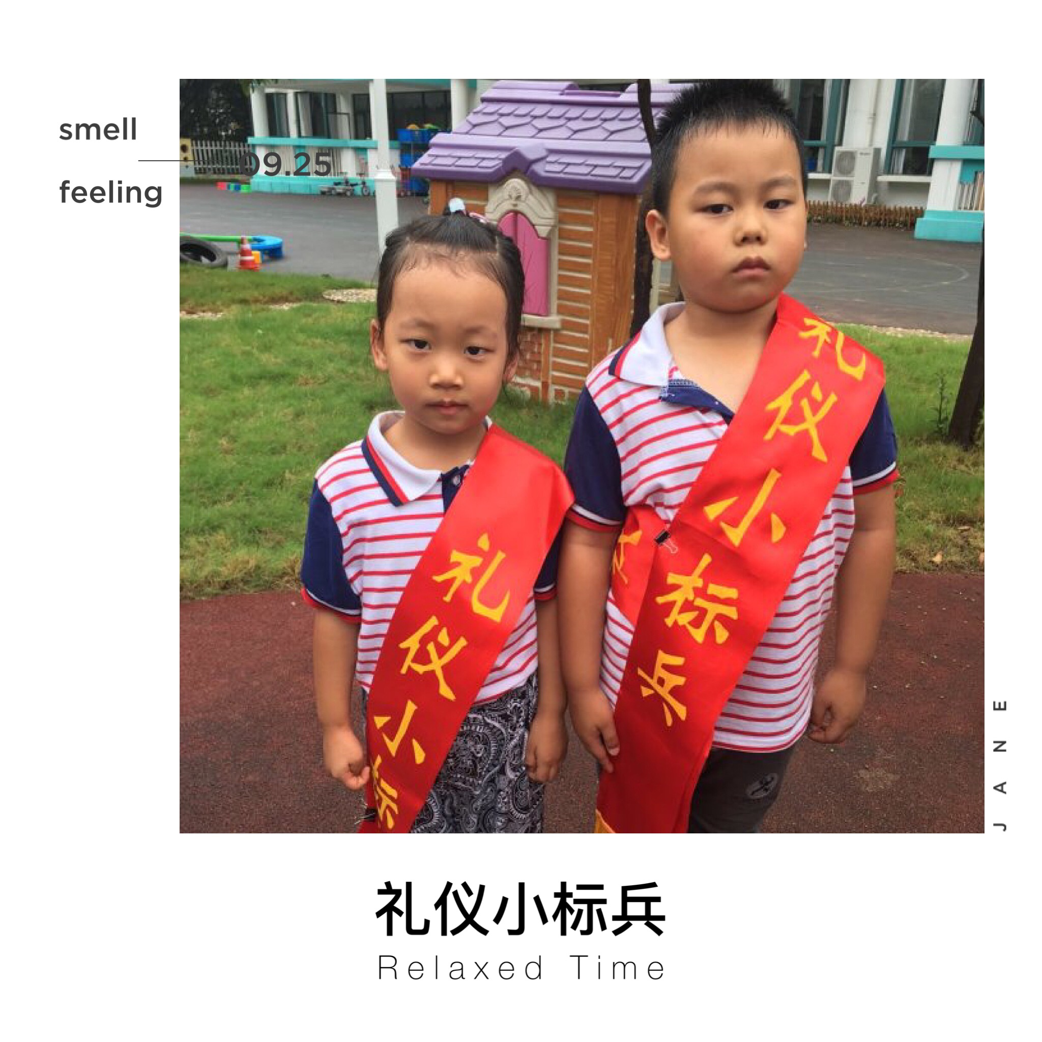 大家好,我们是本周的礼仪小标兵——张芸熙、周翔。我们聪明、懂事。随着我们上大班了,我们的自主能力越来越棒了呢!能学会帮小朋友分发筷子、晾毛巾、拖地。互相合作、懂得团结,希望我们后面越来越厉害哦!