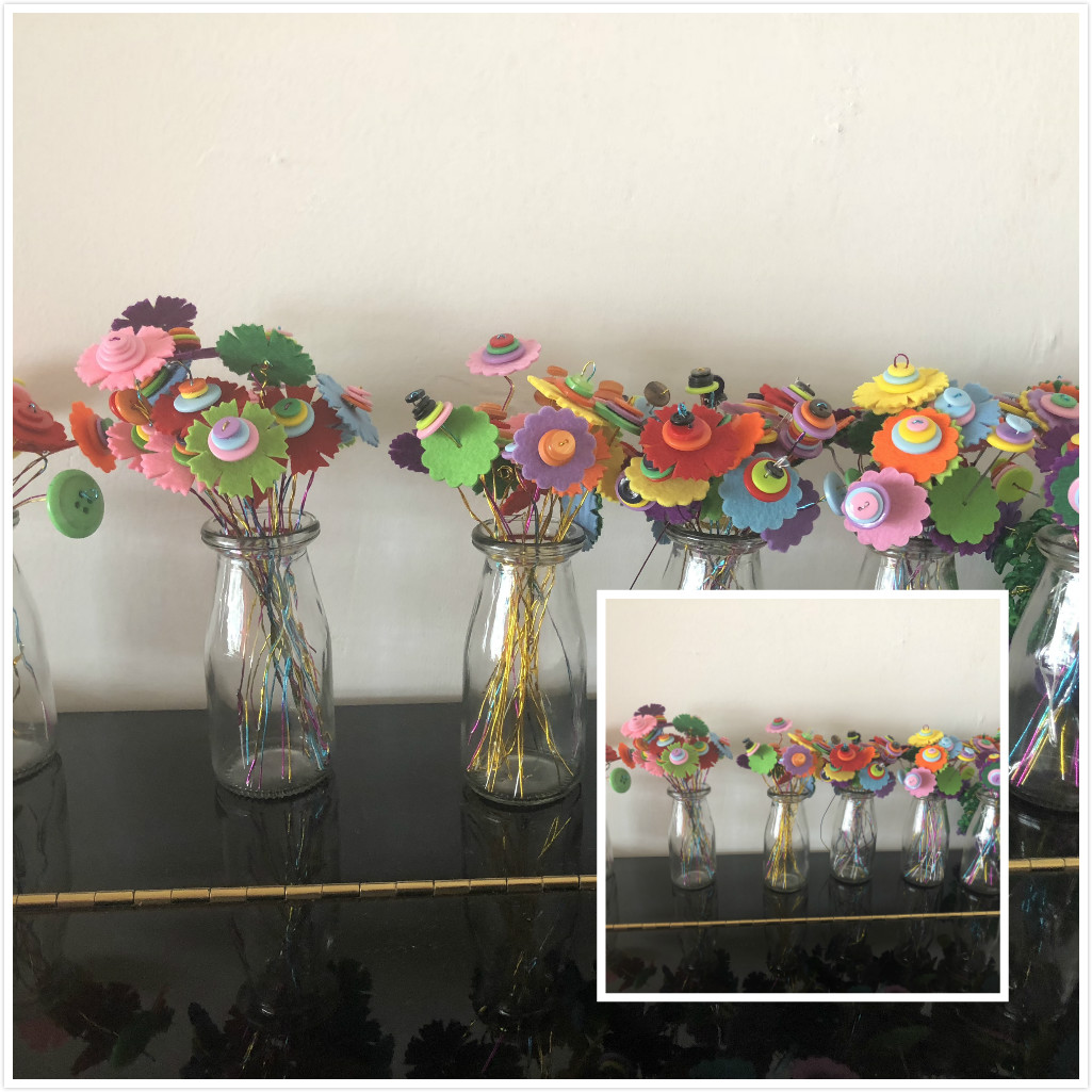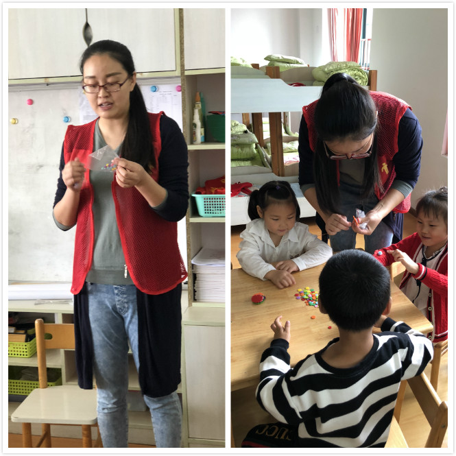 今天是国庆假期后第一天上学,我们的助教家长准备好材料也早早地来到班级,在陪孩子们升完国旗,吃完早点以后,助教活动就开始啦,今天是一节关于纽扣的手工活动哦,孩子们看到五颜六色的纽扣立马被吸引了,这位家长耐心地讲解如何将纽扣串入铁丝以及如何用颜色搭配,孩子们的小眼睛可是一刻都没离开呢。看,我们做的花很好看吧。