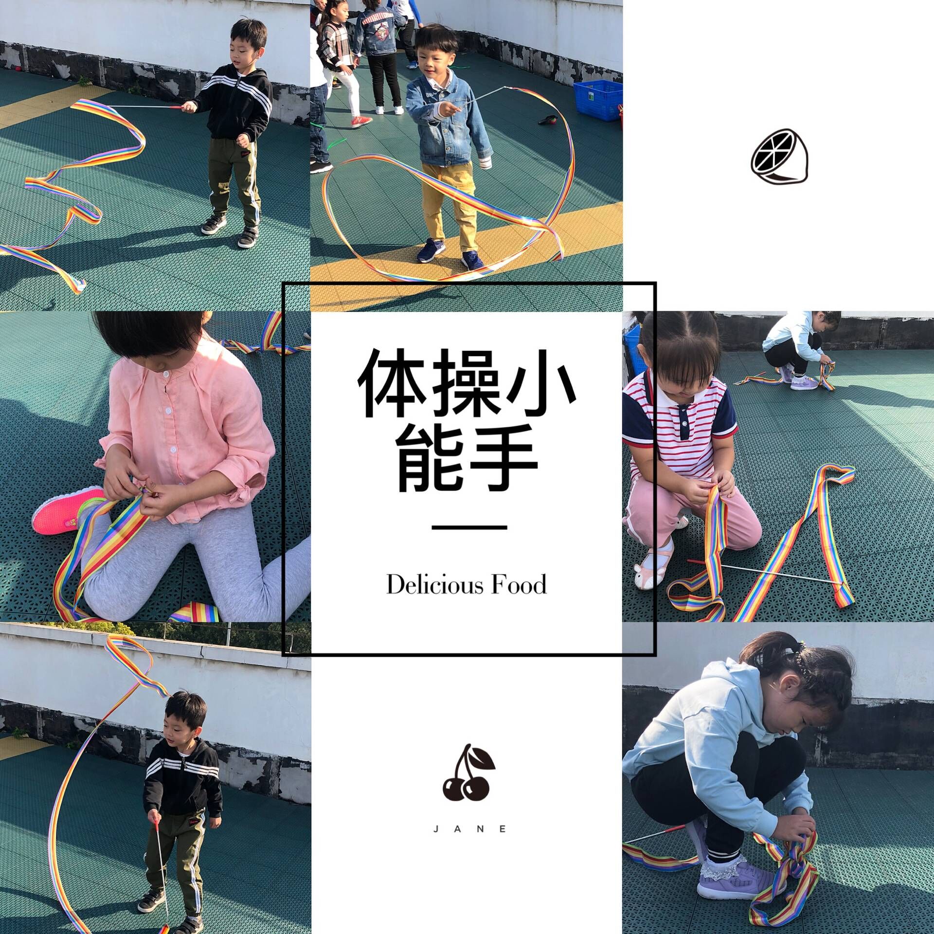 大班晨练锻炼,我们加入了很多新的器械玩具。我们新增了体操棒,小朋友们通过观察,自我探索。发现手腕的力量、姿势不同。可以甩出不一样的造型。那么在玩这个游戏时,也会遇上一个很大的问题,那就是彩带会时不时打结。那么大班幼儿的动手能力就在这个时候很好的体现出来了。瞧!我们的小朋友是不是都很厉害的样子呢