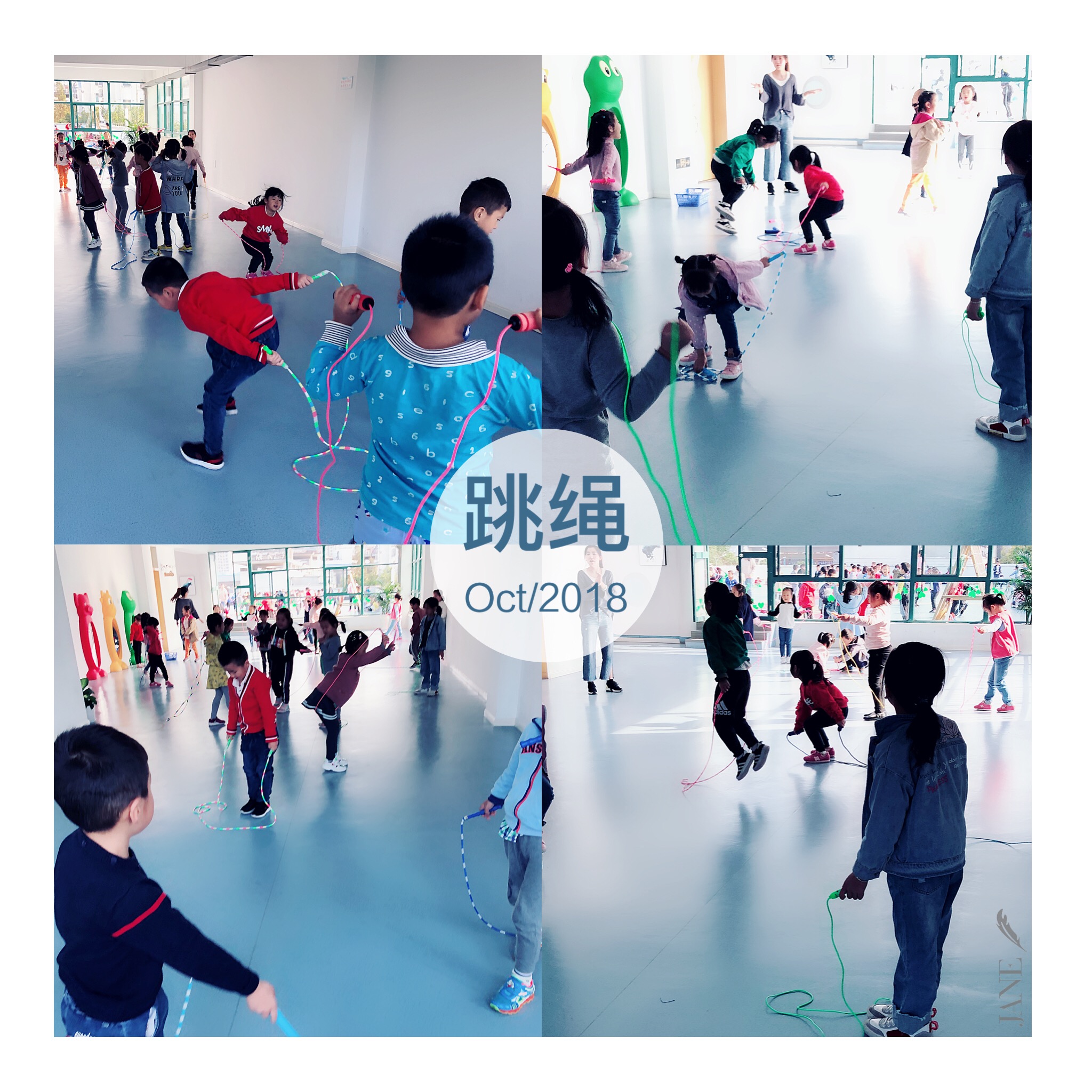 进入大班以后,幼儿的跳跃能力发展较快,平衡能力、协调能力都比中班幼儿得到了显著改善。因此,我们大班年级组集体开展了跳绳活动。班上大班幼儿的跳绳能力都还是不错的。但是也有完全不会跳绳的幼儿,我们除了要看是否是个体差异之外,还利用绳子和幼儿做一些简单易学的游戏,增加了幼儿对跳绳的兴趣,从最简单的带着跳入手,慢慢的尝试分解动作。大部分幼儿有了明显的调高。
