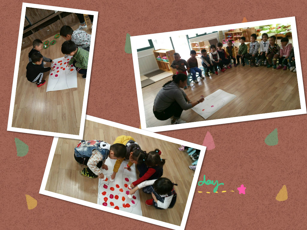 秋天是个收获的季节,水果也丰收啦,为了充分让孩子们了解丰收的场景、感受丰收的喜悦,今天我们带领孩子一起观看了水果丰收的视频,并带孩子们用纸团蘸颜料拓印的方式表现了水果的丰收,看孩子们一个个可认真啦,最后孩子们创作的作品我们一起张贴在了教室里,让孩子们在空闲之余一起说一说、谈一谈水果丰收的场景,下面一起来看看孩子们创作的过程吧!~