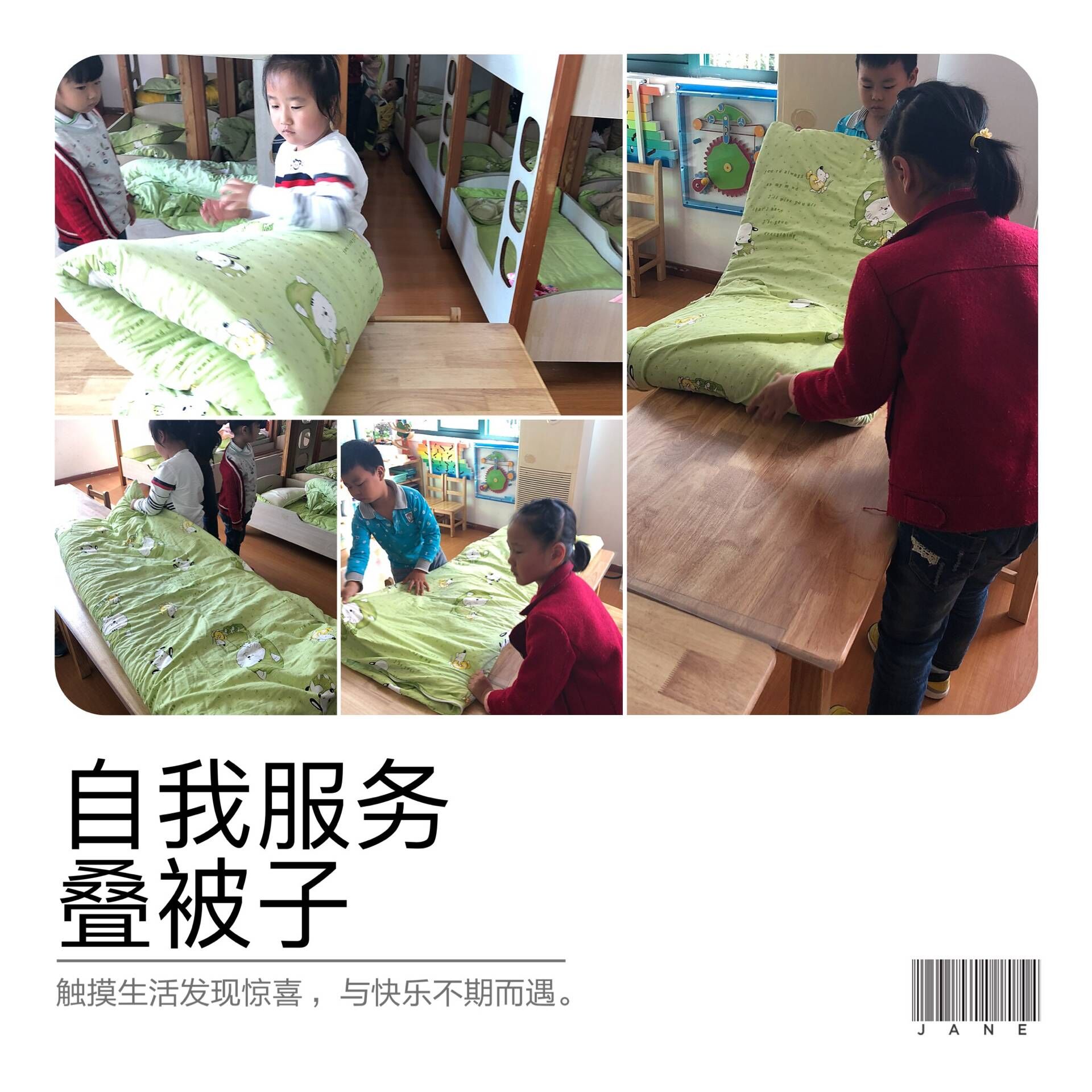 大班的小朋友自理能力已经有了明显的提高,好多事情都是亲力亲为。今天下午,我们班级开展了叠被子的比赛,小朋友们的积极性都非常的高,大家互帮互助。大多数小朋友都已经学会了叠被子,并且叠的也非常的好,只有少数的幼儿动手能力有些薄弱,我们会继续指导加强!